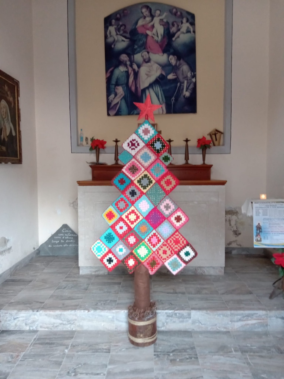 «“Mercoledì in allegria” – spiega una portavoce – è nato dalla volontà di dare vita a un gruppo che ricreasse i rapporti in paese». Il mezzo scelto è stato l’uncinetto: da aprile a dicembre, nel corso di ben otto mesi, una ventina di volontarie e volontari si sono riuniti puntuali ogni mercoledì sera nella sala polivalente per intrecciare fili colorati, ma anche nuove amicizie.