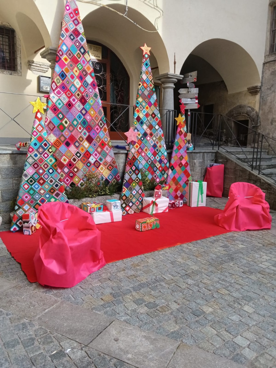 A conti fatti, in otto mesi di lavoro, sono state realizzate oltre seimila mattonelle all’uncinetto, che hanno vestito dieci alberi, il più alto di ben quattro metri: sei compongono il “bosco natalizio”, in piazzetta Pro Loco, uno tridimensionale si trova nei giardini pubblici, uno accanto al presepe e gli ultimi due alle chiese di San Martino e San Carlo.