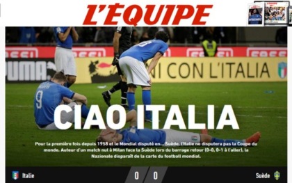 L’espressione che di solito riserviamo alla nostra nazione, questa volta la dedichiamo alla nostra Nazionale. Sempre pronti a ricrederci, però, se arrivasse comunque ai Mondiali. [Trad.: Povera Italia]