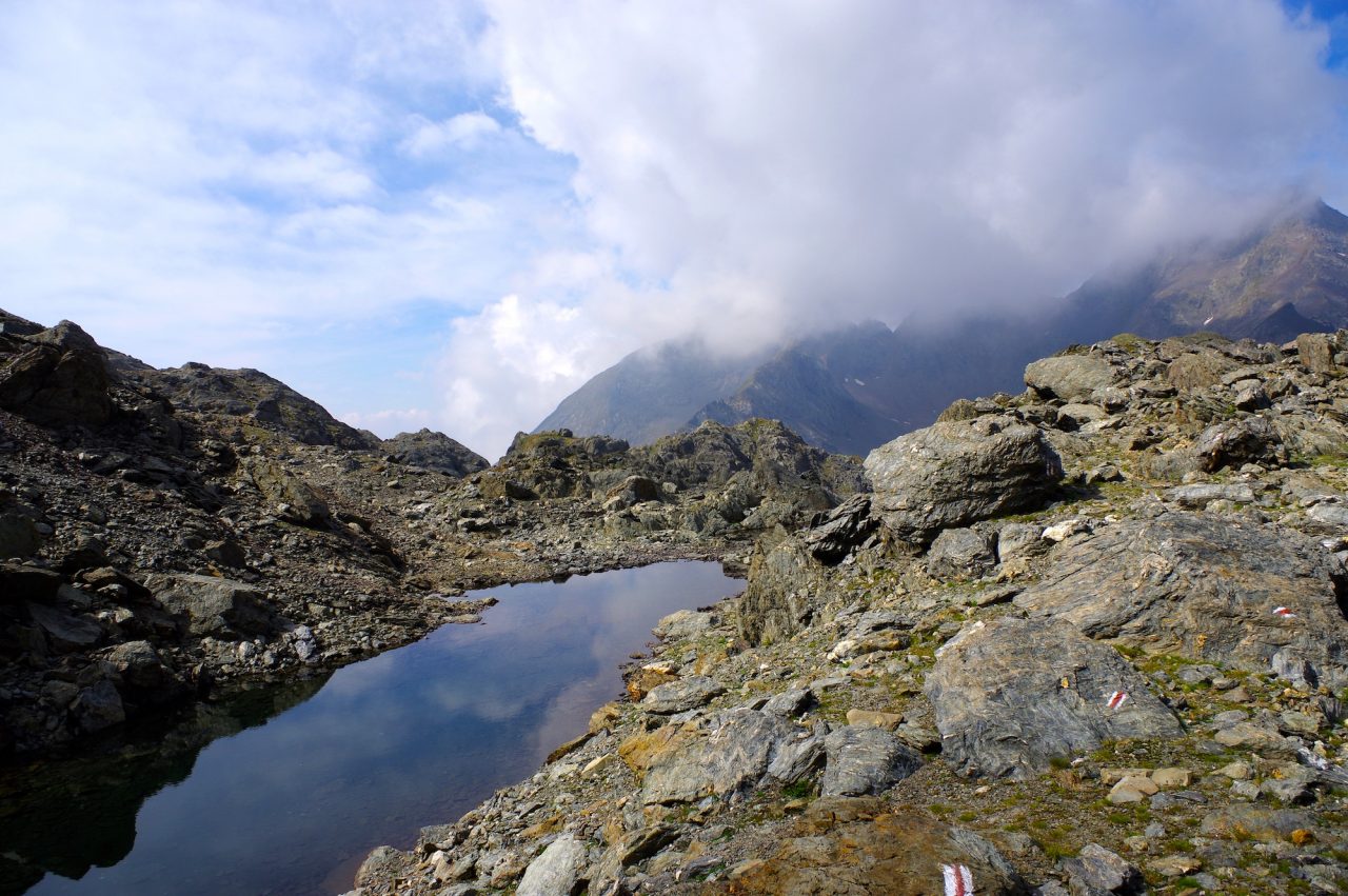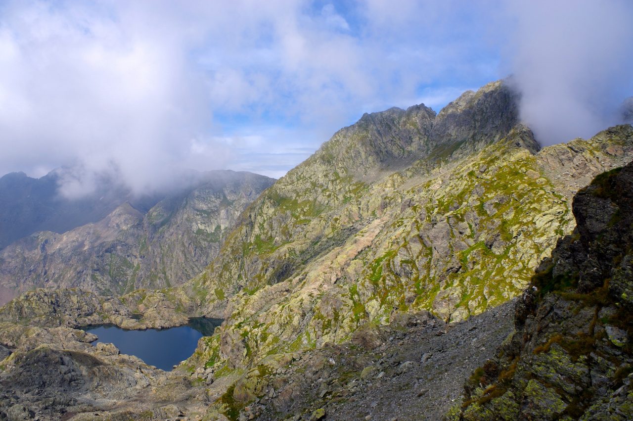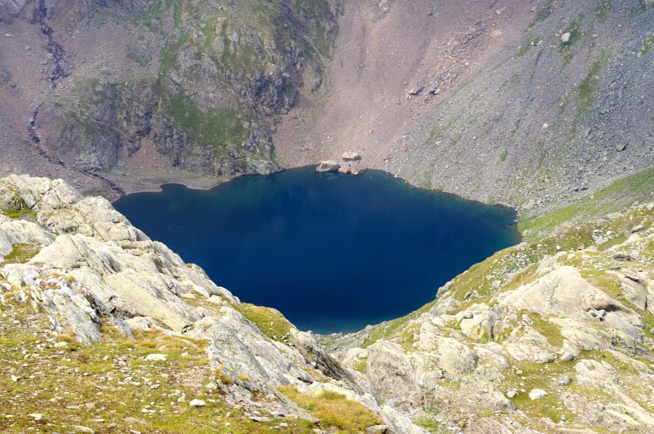 Ormai ci siamo. Non ci resta che raccogliere le energie per l’ultima, ripida, salita finale. Alla nostra sinistra si staglia la ripida traccia di sentiero che tra roccette affilate ci condurrà all’intaglio posto a metri 2730, punto più alto della nostra escursione. Qui dimenticheremo la stanchezza, perché proprio sotto di noi troviamo il Cuore delle Orobie, il Lago Gelt. Incastonato fra le ripidi parenti che scendono dal Pizzo del Diavolo di Malgina possiamo ammirare il lago naturale più alto delle Alpi Orobie, che da questo versante mostra tutta la sua bellezza e rivela la caratteristica forma che gli ha regalato questo appellativo negli anni. Lasciata la stanchezza alle spalle scendiamo in direzione del lago, prestando attenzione al ripido sentiero, fino a raggiungere le sue fresche acque, dove finalmente ci attende un meritato riposo. Anche se a questo punto sfidiamo chiunque ad allontanarsi da questo angolo di paradiso…