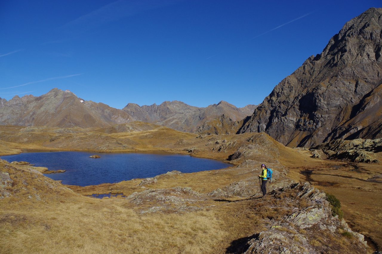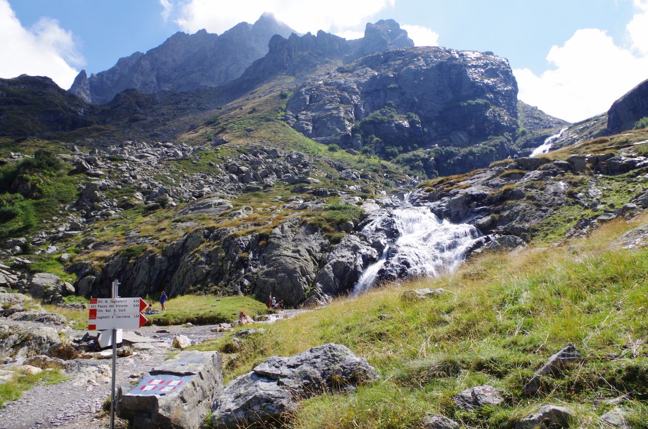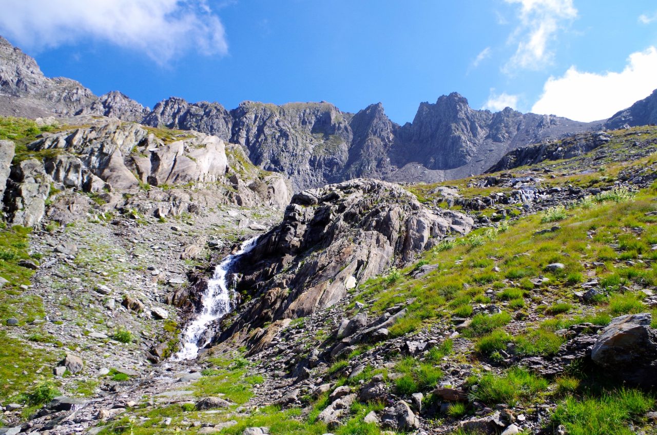 La Val Cerviera. Un ponticello di legno ci permette di attraversare il corso d’acqua e imboccare il segnavia CAI 321. Il sentiero attraversa la valle in tutta la sua lunghezza, fino ad arrivare al Rifugio Nani Tagliaferri, in Val di Scalve, ed è conosciuto come “Itinerario Naturalistico Antonio Curò”. Lungo questo tracciato, comune in un primo tratto al nostro percorso, si trovano diversi animali selvatici, tra cui camosci e marmotte, e vi crescono diversi tipi di piante protette. È stato realizzato dal CAI di Bergamo seguendo per alcuni tratti un percorso di guerra mai utilizzato a fini bellici e intitolato al primo presidente della sezione Bergamasca del Club Alpino. Noi iniziamo una lenta risalita, dettata sia dai panorami che si aprono che dal percorso, fino a raggiungere i bellissimi laghetti della val Cerviera, piccoli specchi d’acqua naturali che in base alla stagione e alle precipitazioni si trovano in numero tra i 5 e 10. Siamo in una quota compresa tra i 2200 e i 2300 metri di quota. Il sentiero poco battuto, gli scrosci d’acqua delle tante cascatelle, lo splendore di queste perle orobiche che riflettono le cime circostanti e il fischio delle marmotte sono tra le tante peculiarità che questo bellissimo luogo riesce a regalare. Difficile non concedersi qualche minuto a osservare questa meraviglia.