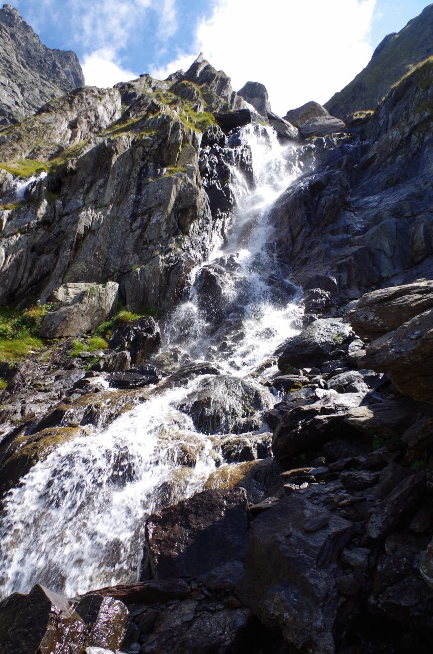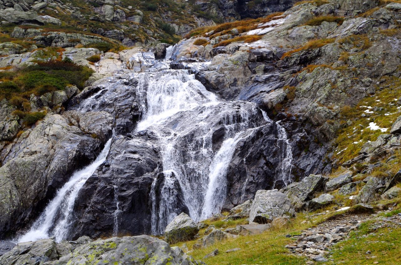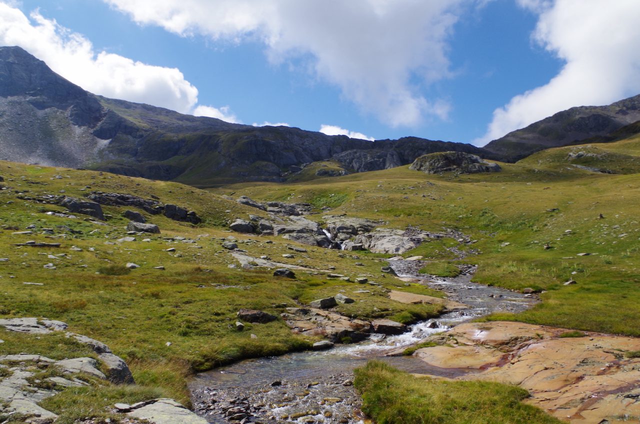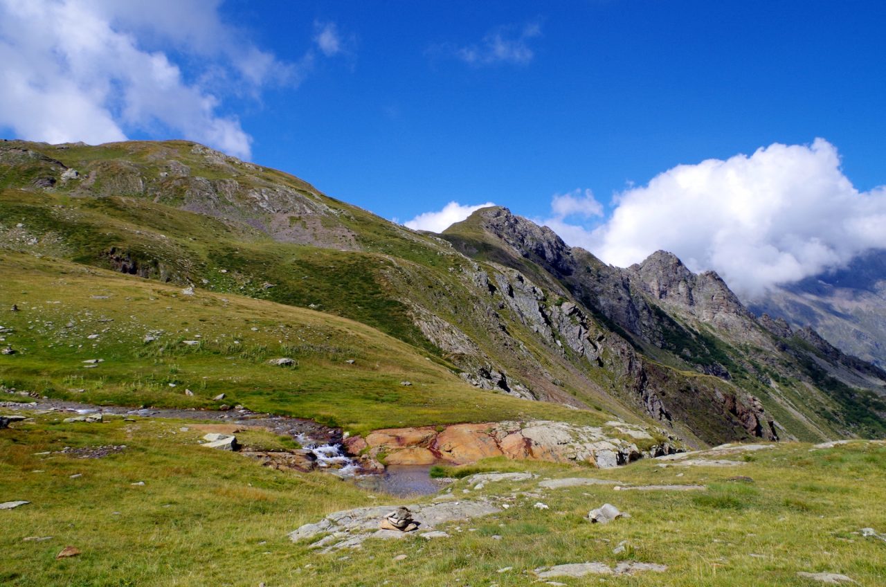 La Val Cerviera. Un ponticello di legno ci permette di attraversare il corso d’acqua e imboccare il segnavia CAI 321. Il sentiero attraversa la valle in tutta la sua lunghezza, fino ad arrivare al Rifugio Nani Tagliaferri, in Val di Scalve, ed è conosciuto come “Itinerario Naturalistico Antonio Curò”. Lungo questo tracciato, comune in un primo tratto al nostro percorso, si trovano diversi animali selvatici, tra cui camosci e marmotte, e vi crescono diversi tipi di piante protette. È stato realizzato dal CAI di Bergamo seguendo per alcuni tratti un percorso di guerra mai utilizzato a fini bellici e intitolato al primo presidente della sezione Bergamasca del Club Alpino. Noi iniziamo una lenta risalita, dettata sia dai panorami che si aprono che dal percorso, fino a raggiungere i bellissimi laghetti della val Cerviera, piccoli specchi d’acqua naturali che in base alla stagione e alle precipitazioni si trovano in numero tra i 5 e 10. Siamo in una quota compresa tra i 2200 e i 2300 metri di quota. Il sentiero poco battuto, gli scrosci d’acqua delle tante cascatelle, lo splendore di queste perle orobiche che riflettono le cime circostanti e il fischio delle marmotte sono tra le tante peculiarità che questo bellissimo luogo riesce a regalare. Difficile non concedersi qualche minuto a osservare questa meraviglia.