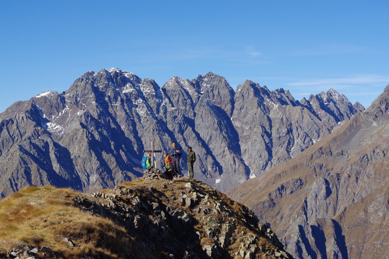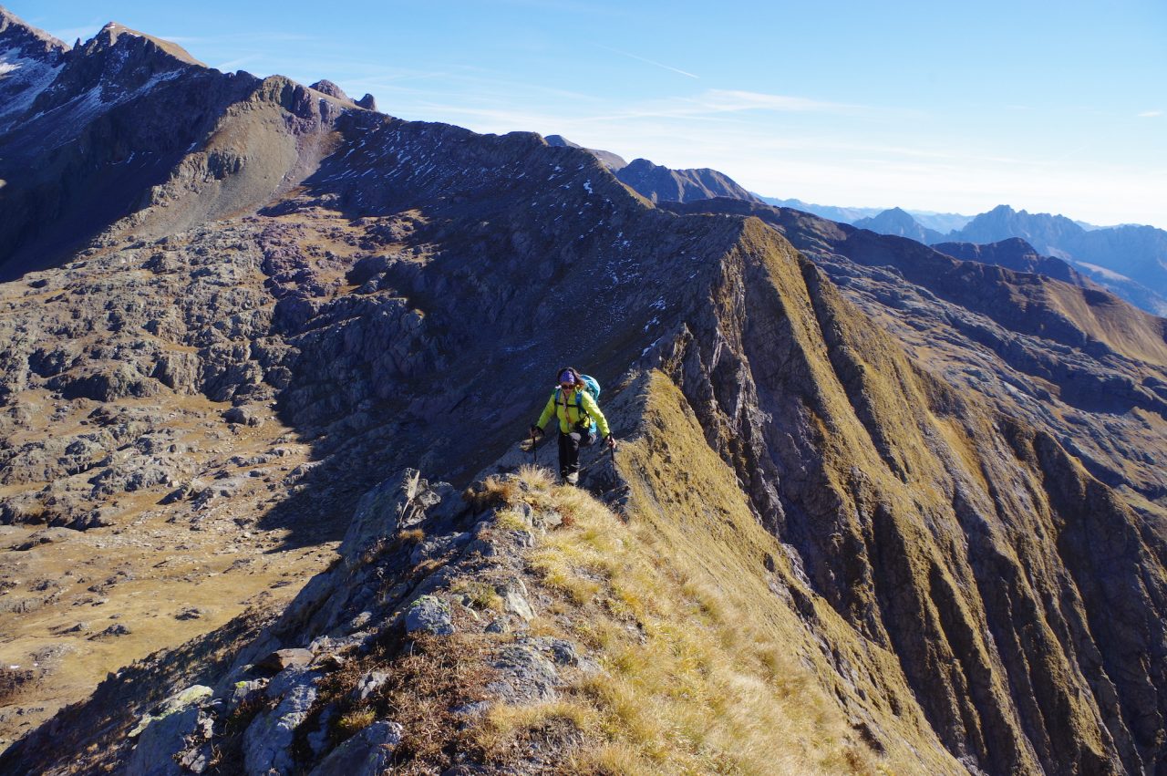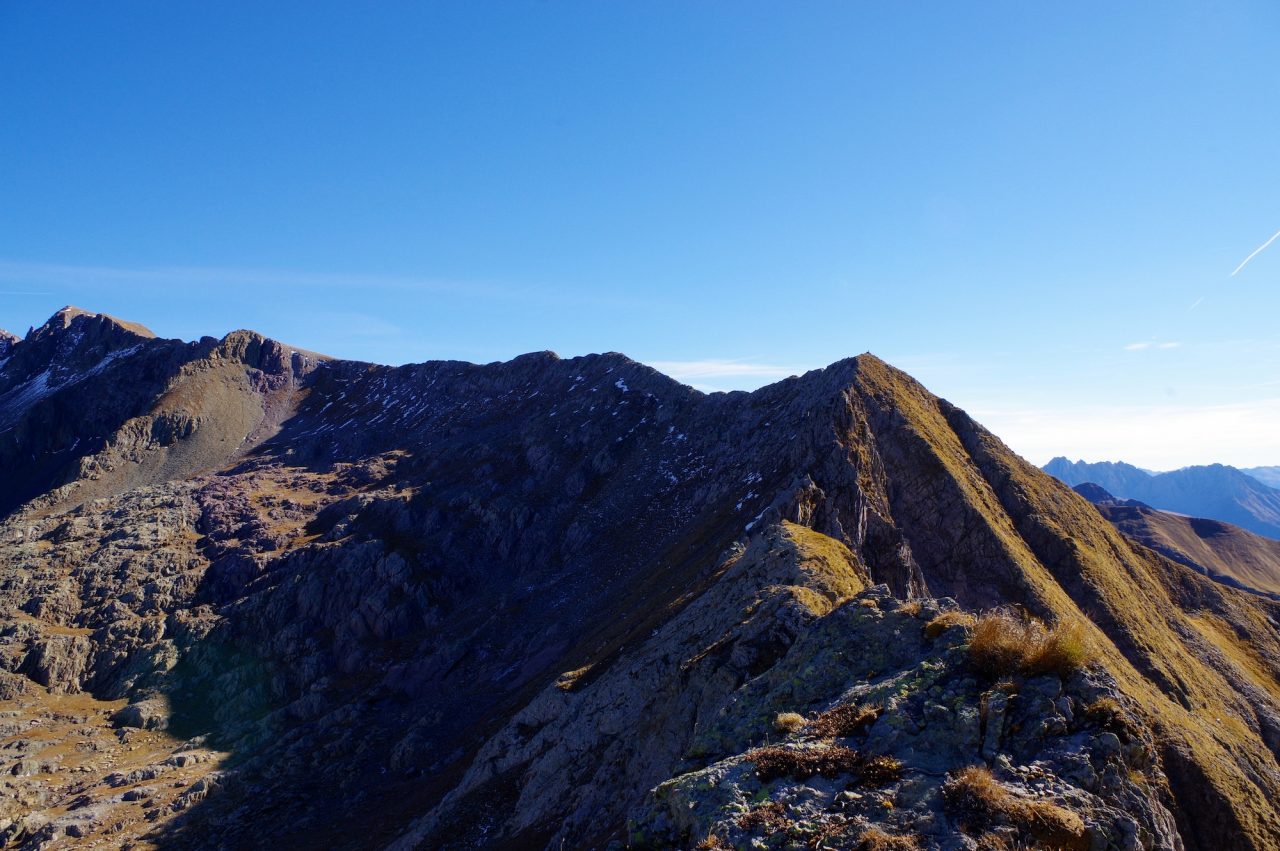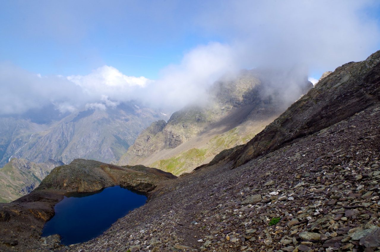 Il ritorno. Scattate le foto di rito e gustato lo stupendo skyline, possiamo tornare dal percorso comune all’andata e ripercorrere la cresta a ritroso, oppure possiamo scendere dal ripido sentiero che si snoda proprio sotto la croce di vetta. Prestando attenzione agli sfasciumi, scendiamo in direzione di uno stretto intaglio, per poi perdere velocemente quota in direzione dei prati sottostanti e raggiungere i già citati laghetti della Val Cerviera. Il percorso diventa comune all’andata, riportandoci al rifugio Antonio Curò e successivamente a Valbondione, nostro punto di partenza per questa bellissima escursione.