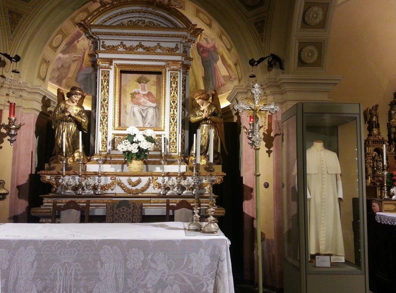 Nel 2005, all’indomani della morte di Papa Karol Wojtyla, oggi San Giovanni Paolo II, fu ancora la devozione dei casnighesi a portare al Santuario una preziosa reliquia. I coniugi Mario Franchina (morto nel 2010) ed Emma Torri avevano infatti stretto amicizia con il Santo Padre sin dal 1979, durante i suoi soggiorni a Castelgandolfo. Loro (lui canighese, lei di Gandino) da emigranti dell’industria tessile vivevano nella vicina Aprilia e al Papa portavano frutta e verdura dei loro campi. Un’amicizia semplice e straordinaria protrattasi per oltre 25 anni, sancita, all’indomani della morte del Papa (il 2 aprile 2005) dal dono della Veste per mano di monsignor Stanislao Dziwisz, oggi arcivescovo di Cracovia. Non vi furono dubbi: essa doveva essere esposta al Santuario della Madonna d’Erbia, di cui i coniugi Franchina avevano parlato al Papa polacco.