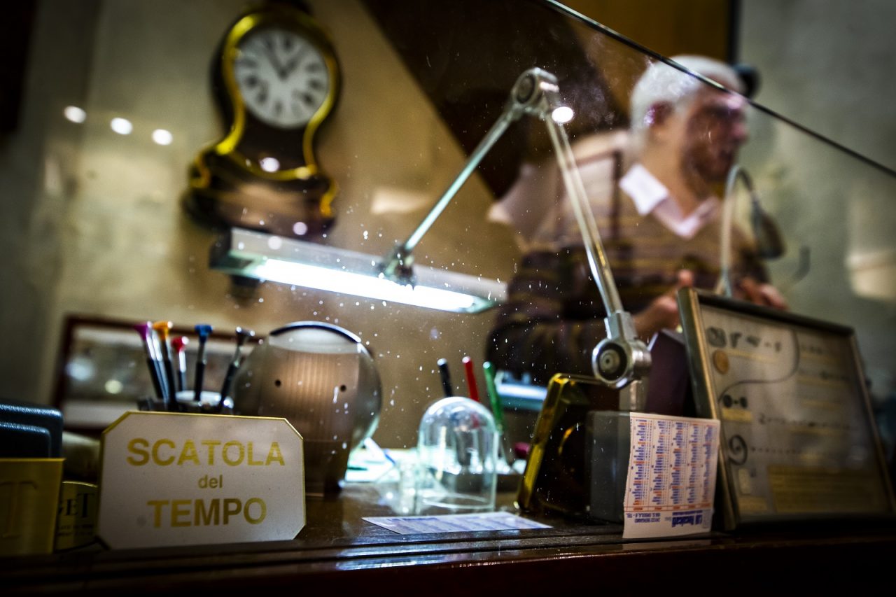 Voi lo sapevate che fu proprio un orologio da taschino a riportare parte dell’equipaggio del Bounty in Inghilterra? E che Pietro Fanzago, prima di iniziare la costruzione del grande orologio di Clusone, disse: «Dio mi ha dato una certa intelligenza e la dimostrerò costruendo un orologio unico (?)». Guido parla con calma e al ritmo dei tanti oggetti che lo circondano. Di tanto in tanto si ferma e lentamente apre una vetrina, prende un carillon, una pendola, un orologio da taschino, li apre, ci mostra gli ingranaggi e ce ne fa sentire i suoni. Per due ore ci incanta con i tanti oggetti del suo negozio in via Sant’Orsola e pare di fare con lui un viaggio nel tempo, pieno di magia, di musica e di cura. Ogni tanto compare suo fratello Fernando: lui è un orafo, mite e taciturno con il quale condivide il lavoro da una vita intera. Usciamo e ci resta la voglia di tornare, per ascoltarlo ancora e guardarlo riparare con tale delicata pazienza i nostri oggetti del cuore, certi di mettere in mani sicure i nostri ricordi più cari.