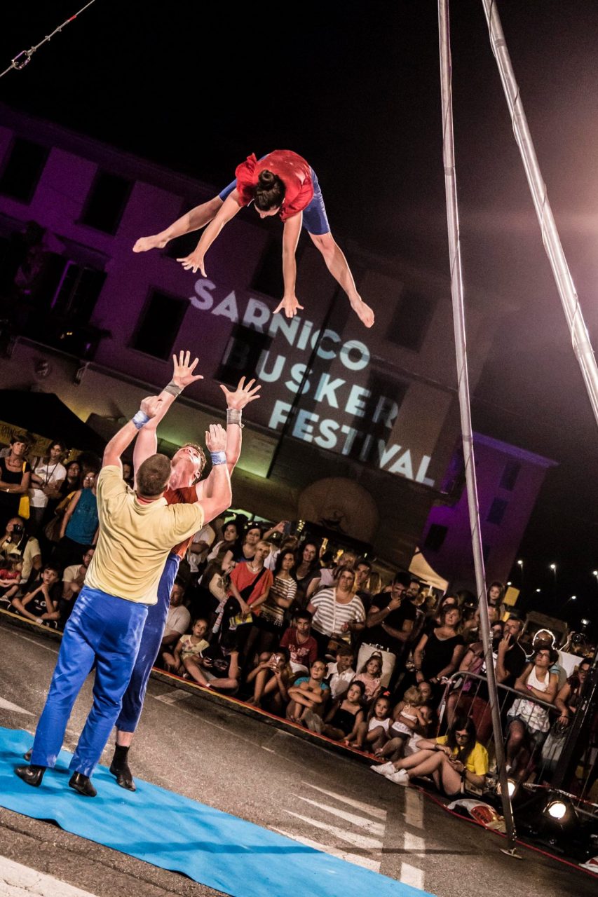 Tutti col collo ben esteso per vedere le acrobazie di clown e saltimbanchi al Sarnico Busker Festival, Festival Internazionale dell’Arte di Strada, una delle rassegne più importanti di settore a livello nazionale, che si tiene dal 27 al 30 luglio, sul Lago d’Iseo, tra Sarnico e Paratico. Un suggestivo palcoscenico a cielo aperto dove si esibiscono 150 artisti di strada, oltre 45 compagnie provenienti da tutto il mondo per più di 25 spettacoli in 4 giorni di Festival. Una grande kermesse della creatività, del divertimento, dell’arte di strada, dedicata a tutte le età, a cui sono attese oltre 45 mila persone. Ce n’è per tutti i gusti, per grandi e piccini. Cirque nouveau, circo acrobatico, teatro di figura, teatro urbano, danza contemporanea, fachirismo, acrobatica aerea su teli e trapezio, palo cinese, funambolismo ed equilibrismo, mimo, teatro di burattini, street band, giocoleria con il fuoco, musica.