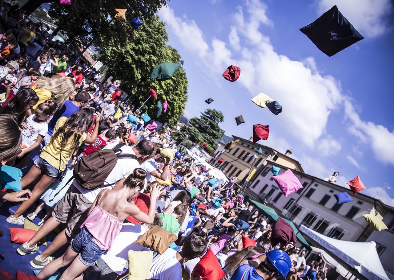 A misura di bambino. Domenica 30 luglio torna a grande richiesta l’attesa Battaglia dei cuscini organizzata dalla Compagnia Melarancio di Cuneo. Piazza XX Settembre, dalle 10.30 si trasforma in un grande, colorato e allegro campo di battaglia. L’idea nasce dal ricordo degli scontri all’ultima piuma che da bambini, tra fratelli, si facevano sul letto prima di andare a dormire: qui il gioco si moltiplica e diventa uno spettacolo di piazza esplosivo, divertente e di grande coinvolgimento. Centinaia di leggerissimi cuscini multicolori cadranno dall’alto ed esploderà la battaglia, a ritmo di musiche ska. Ad un preciso segnale tutto si ferma e la battaglia si conclude in un soffio di piume e con un grande telo colorato su cui gli spettatori vengono invitati a sedersi: il telo comincia a gonfiarsi e si trasforma in un cuscino gigante, pieno d’aria, su cui è possibile nuotare, rotolare, gattonare e ovviamente riposarsi dopo la fatica. Da venerdì 28 a domenica 30 luglio, sul Lungolago Garibaldi di Sarnico c’è Ludopuzzle, un laboratorio spagnolo, di Granada, dedicato all’ideazione e realizzazione di giochi educativi in legno. L’attività, che prevede la costruzione manuale di più di 30 giochi, è ideale per i bambini e coinvolgente anche per gli adulti. Sabato 29 e domenica 30 luglio, Bubble on Circus presenta “Il soffio magico”, uno spettacolo di bolle di sapone, magia e teatro comico.