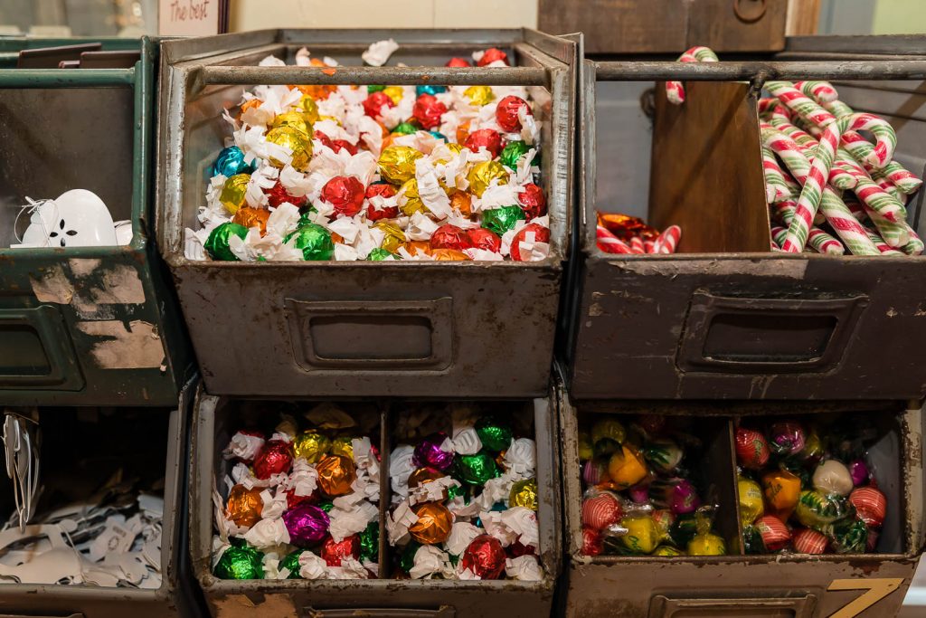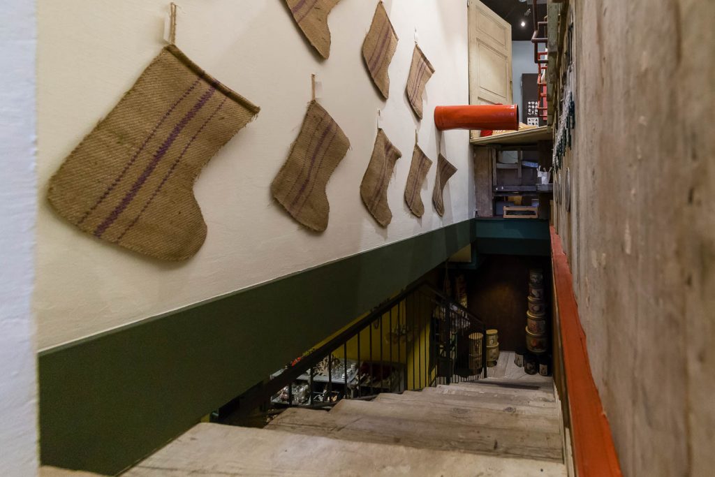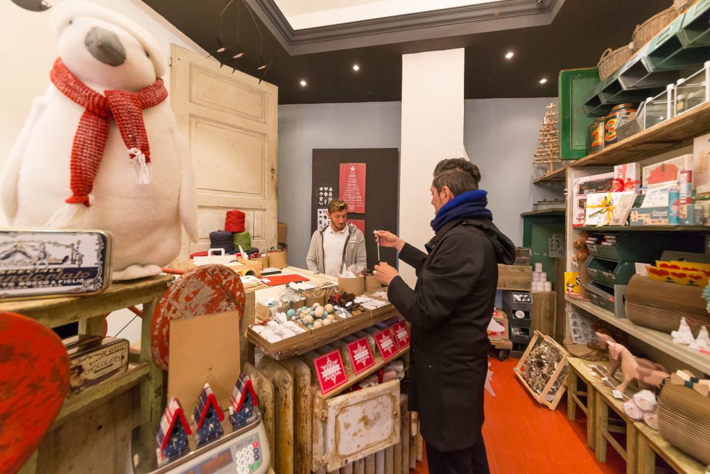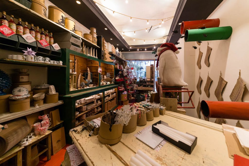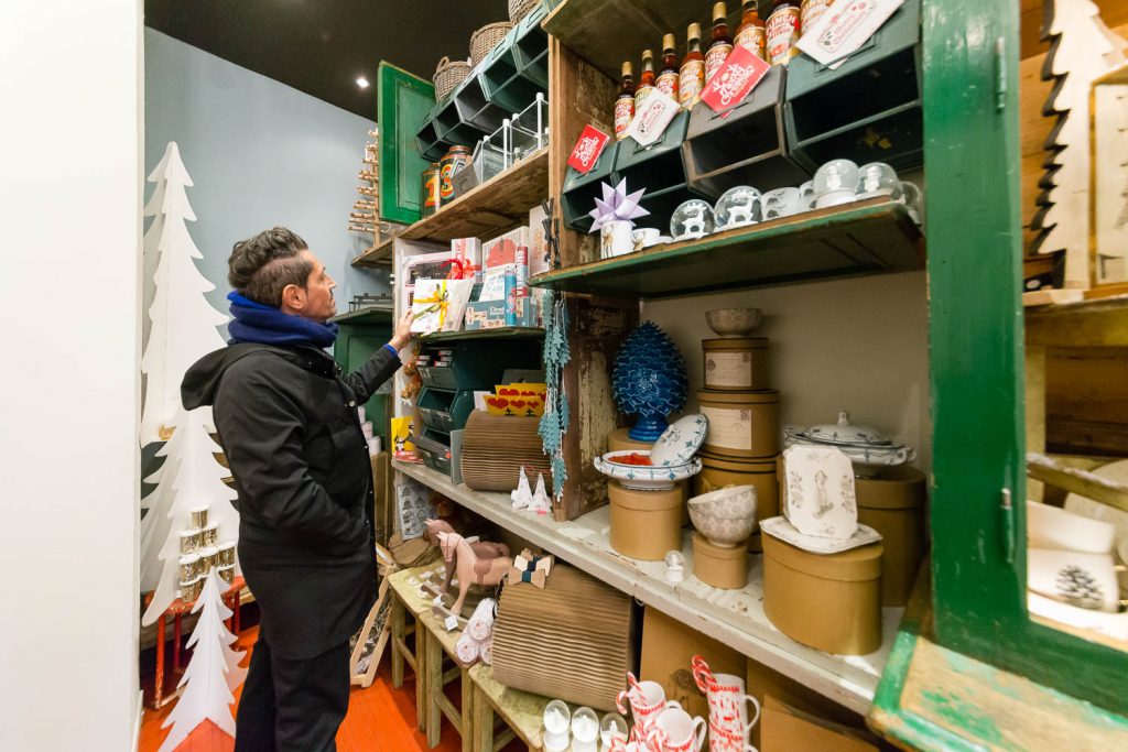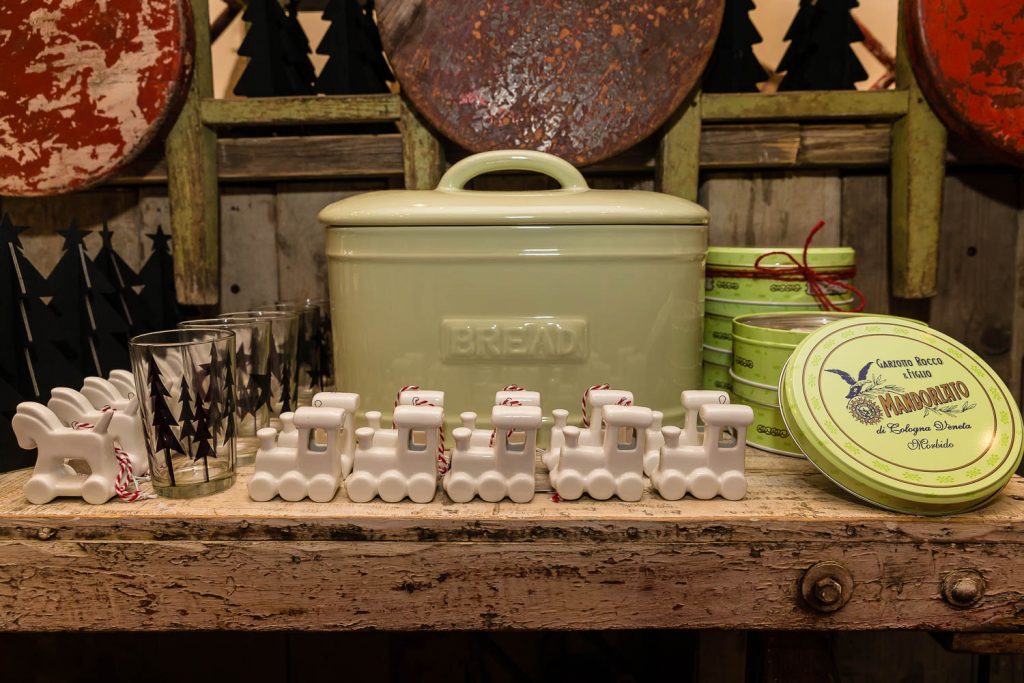 Grande attenzione è rivolta ai bambini, con i giochi Londji dal sapore vintage, come il teatrino di carta di marionette dedicate a fiabe differenti (da Cappuccetto Rosso ai Tre Porcellini), i giochi didattici come il puzzle a forma di salvadanaio, il domino con i personaggi del circo, il celebre gioco dell’oca e il puzzle a forma di treno lungo due metri. Non è finita qui! Perché oltre a conquistare il pubblico con vista, stile e raffinate suggestioni, Angelo e Andrea hanno intenzione anche di prenderci tutti per la gola: «Proponiamo scatole di latta d’antan di una pasticceria spagnola artigianale, che incarta i biscotti uno per uno come una volta, poi ci sono i torroni, le caramelle, le originali visioni al cioccolato Le Comptoir de Mathilde, con forme di cioccolate munite di martello per romperlo in pezzi o il cucchiaio di legno con cioccolato attaccato, pronto da sciogliere in una tazza di latte. Dulcis in fundo: panettone, pandoro e offella della storica pasticceria veronese Perbellini».