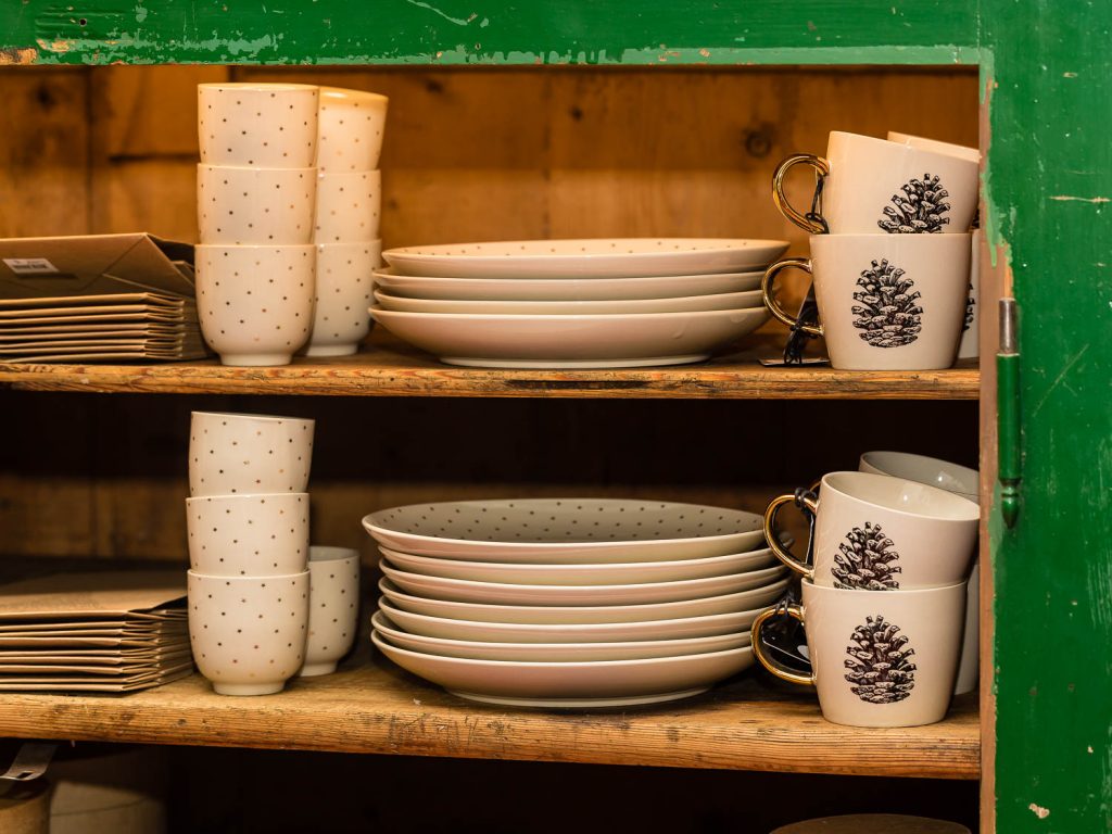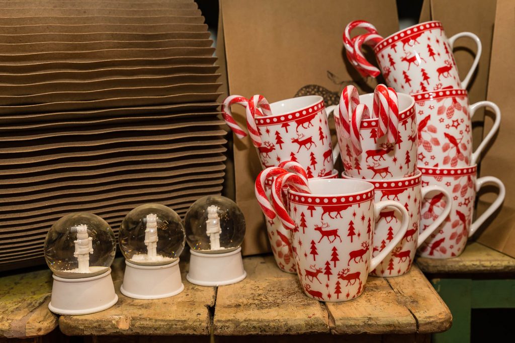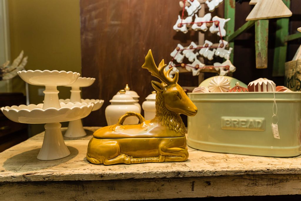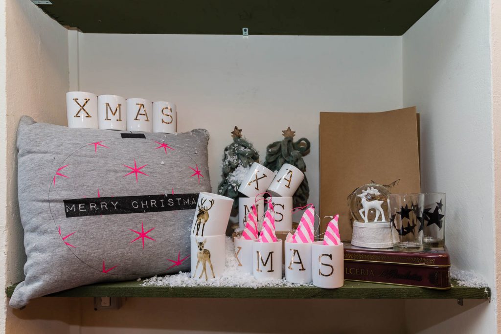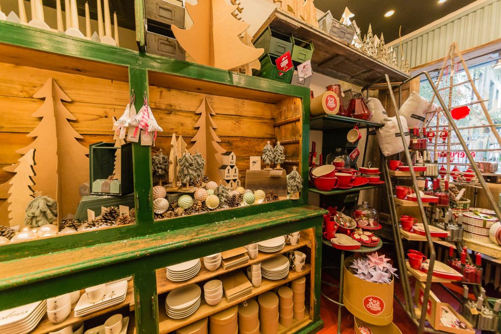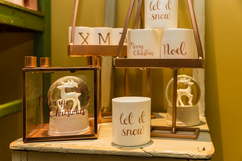 «Natale è il piacere di augurarsi cose belle, è il lusso di godersi le persone a cui vogliamo bene in un’atmosfera che ci fa sentire sempre un po’ bambini», dice Andrea. Un pensiero condiviso anche da Angelo, che aggiunge: «Natale è la voglia di ritrovarsi, di mangiare cose buone, di coccolarsi un po’, di fare e ricevere un regalo inaspettato». Quale posto migliore per trarre ispirazione natalizia se non in questa fucina d’idee di 100 metri quadrati su due livelli? «Il nostro obiettivo è proporre un’immagine innovativa ed esclusiva del Natale. Oltre ai tradizionali colori rosso e oro, che simboleggiano le festività invernali, proponiamo tonalità calde come il rame e il bronzo, alternate a nuance prese in prestito dai Paesi scandinavi, come il verde menta, il nero e il bianco, per un effetto chic e contemporaneo» specifica Lorenzi. Pochi e selezionatissimi fornitori compongono il portfolio di aziende, incaricate di render memorabili le prossime feste: l’oggettistica danese firmata Bloomingville, la linea casa Ib Laursen e tante idee per decori e pensieri, come i set per la colazione, le tazze a tema, i tovaglioli con stampe bene auguranti, le cappelliere cilindriche e ovali, i biglietti d’auguri personalizzati, le candele dell’avvento e le palline per l’albero di Natale in vetro o ceramica. «Il nostro fiore all’occhiello sono le ceramiche prodotte da noi a marchio Amarcord, realizzate a mano da un laboratorio artigianale emiliano sui nostri disegni e dipinte con i colori scelti da noi» continuano i titolari.