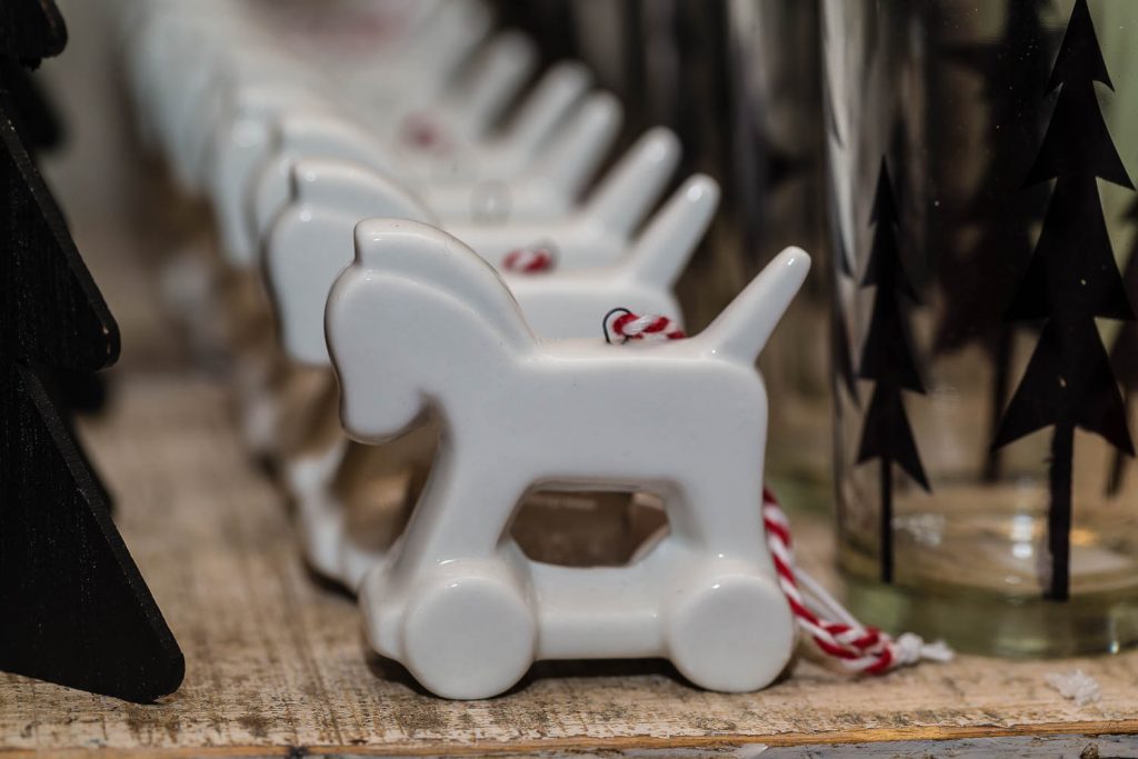 Uno spazio raffinato, dunque, aperto a chiunque sogni di vivere il prossimo Natale nel suo massimo splendore, dove confluisce il meglio della tradizione italiana ed estera, con tanti spunti presi in prestito dalle fiere di Parigi e Londra, esposti (solo per poco) nella ridente cittadina orobica. «Abbiamo già aperto al pubblico, ma l’inaugurazione ufficiale è fissata per i primi di dicembre», precisa Angelo, dopo aver ricevuto una consegna tanto attesa: un trenino elettrico realizzato su modello dei vagoni a carbone ottocenteschi. Una perla di rara bellezza, come ogni articolo contenuto nello scrigno immaginifico di Amarcord. «A Santa Lucia, metteremo una cassetta delle lettere per i più piccoli e abbiamo una sorpresa in serbo anche in vista dell’arrivo di Babbo Natale – conclude il talentuoso wedding planner con l’indole da cool hunter – ma non svelo oltre per non rovinare la sorpresa…».