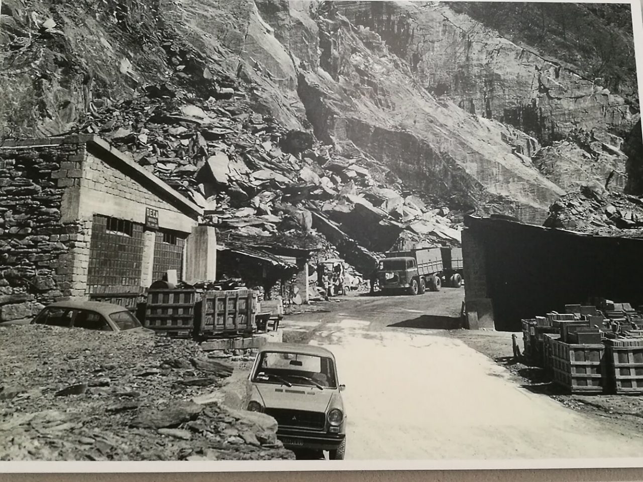 Estrazione. Il Porfiroide Grigio viene estratto in alta Val Brembana, tra il paese di Branzi e quello di Carona, ed è noto ai più con il nome di Ardesia di Branzi. Attualmente l’unica cava dove si coltiva è quella “storica”, nota con il nome di Piodera, collocata proprio lungo la strada che collega Branzi con Carona, a una quota di circa mille metri. Dato il rigido clima di media montagna, la coltivazione si concentra su archi stagionali di sei, otto mesi, generalmente da marzo/aprile fino a ottobre/novembre, in funzione delle temperature e delle precipitazioni nevose. L’abbattimento del materiale dal fronte cava avviene mediante l’utilizzo di esplosivo che permette di sfruttare le discontinuità naturali della roccia senza causare eccessiva frantumazione: inizialmente si praticano dei fori allineati sulla parete per delimitare la porzione di roccia da distaccare e poi vi si colloca l’esplosivo. I blocchi così abbattuti hanno forme e dimensioni variabili e vengono lavorati dai “piöder” nei laboratori siti in prossimità del fronte cava.