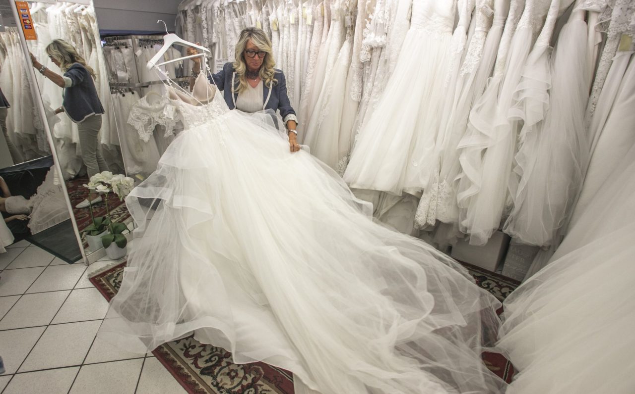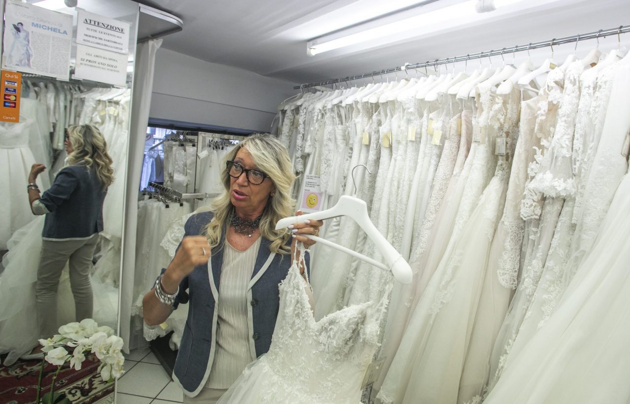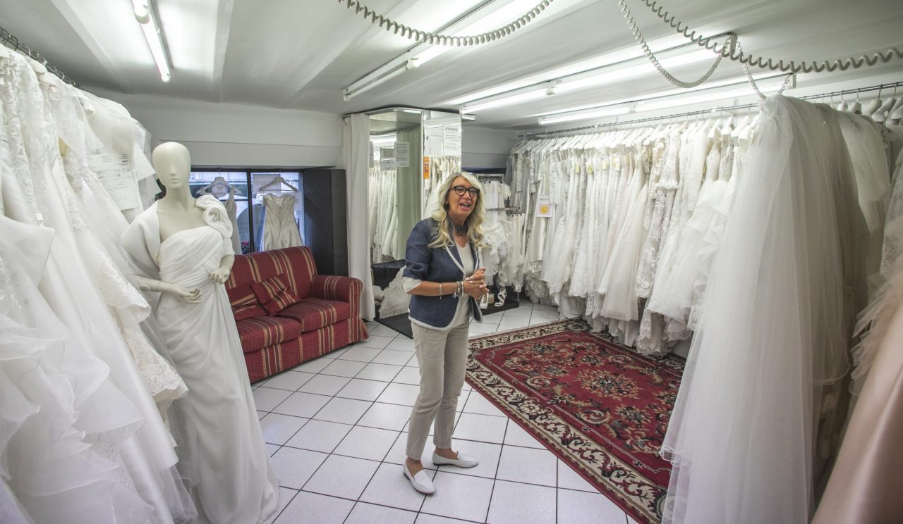 Nel negozio, al primo piano gli abiti da cerimonia la fanno da padroni e non è raro trovare un abito visto poco prima sul red carpet di Cannes o in qualche passerella in giro per il mondo. Michela ritira abiti e accessori da sfilate o privati e dopo un’attenta valutazione delle condizioni del capo li rimette in circolo perché qualcun altro possa viverseli: «Mi piace l’idea di dare una seconda vita alle cose e di realizzare i sogni di più persone». Sono diverse le situazioni che portano le persone a liberarsi di un capo griffato: c’è chi si annoia del proprio guardaroba, chi non può usare lo stesso abito in più occasioni, chi ha ricevuto un regalo sbagliato e chi probabilmente condivide con Michela l’idea di mettere in circolo un po’ di magia. Inutile nascondere che ci sarebbe piaciuto scoprire aneddoti curiosi e magari qualche pettegolezzo, ma Michela – la signora Montanari – ha mantenuto un riserbo serrato, confermando cura e professionalità. Infine, ha aperto le porte dell’area dedicata agli abiti da sposa – quelli che solitamente guardiamo sulle riviste patinate e che qui diventano possibili per molti – e qui ci ha regalato il suo sorriso più grande: «Vestiamo sposi e spose al primo, secondo, terzo matrimonio e ora anche coppie di fatto. Vederli felici ed emozionati nel loro abito dei sogni e che mai avrebbero immaginato di poter indossare è per me l’emozione più grande». La sobrietà – che talvolta la moda trascura – qui trova casa nei modi e nel progetto sostenibile di Michela e del suo mercatino.