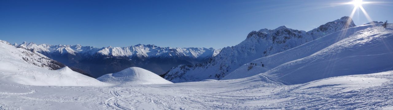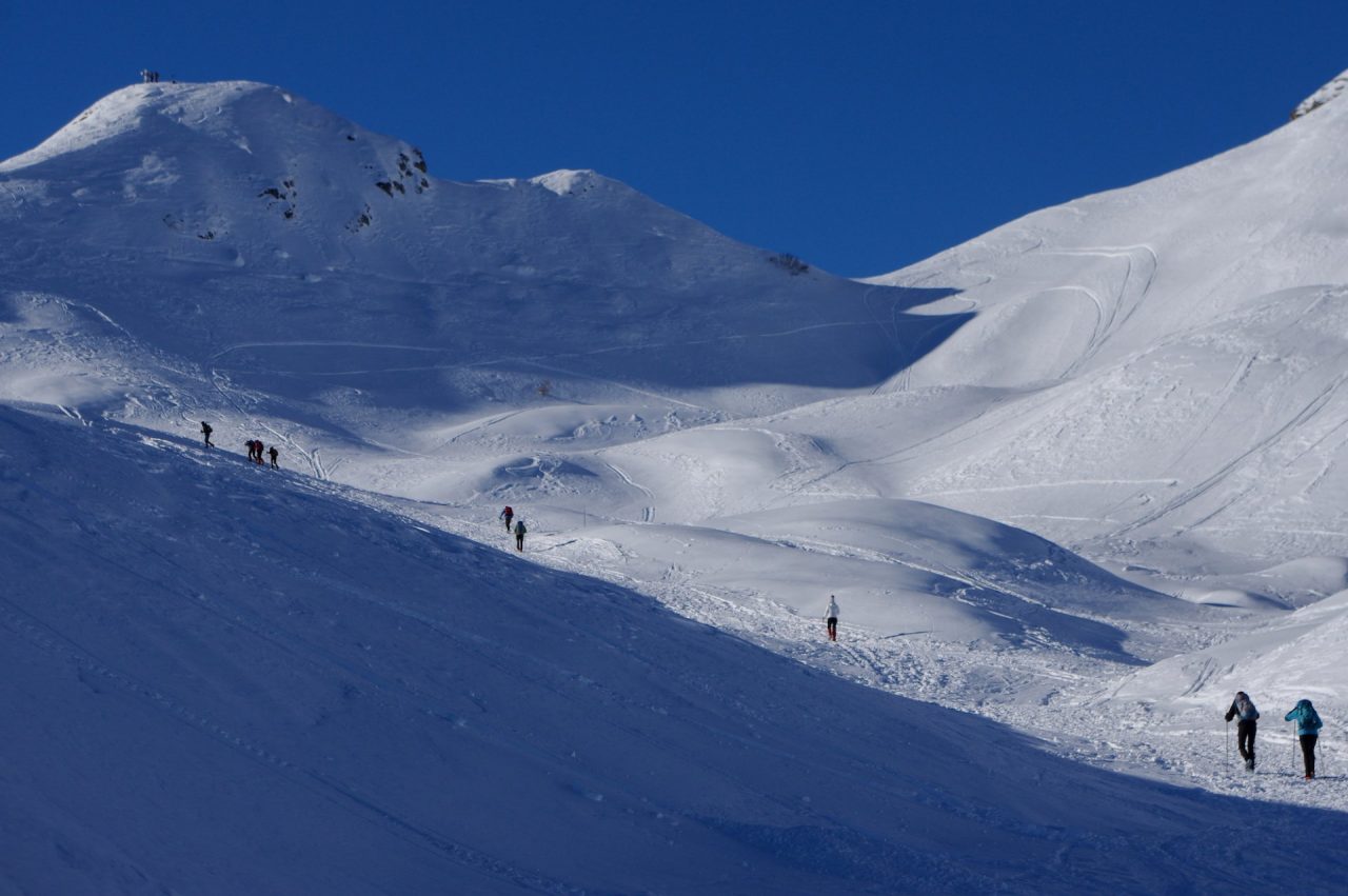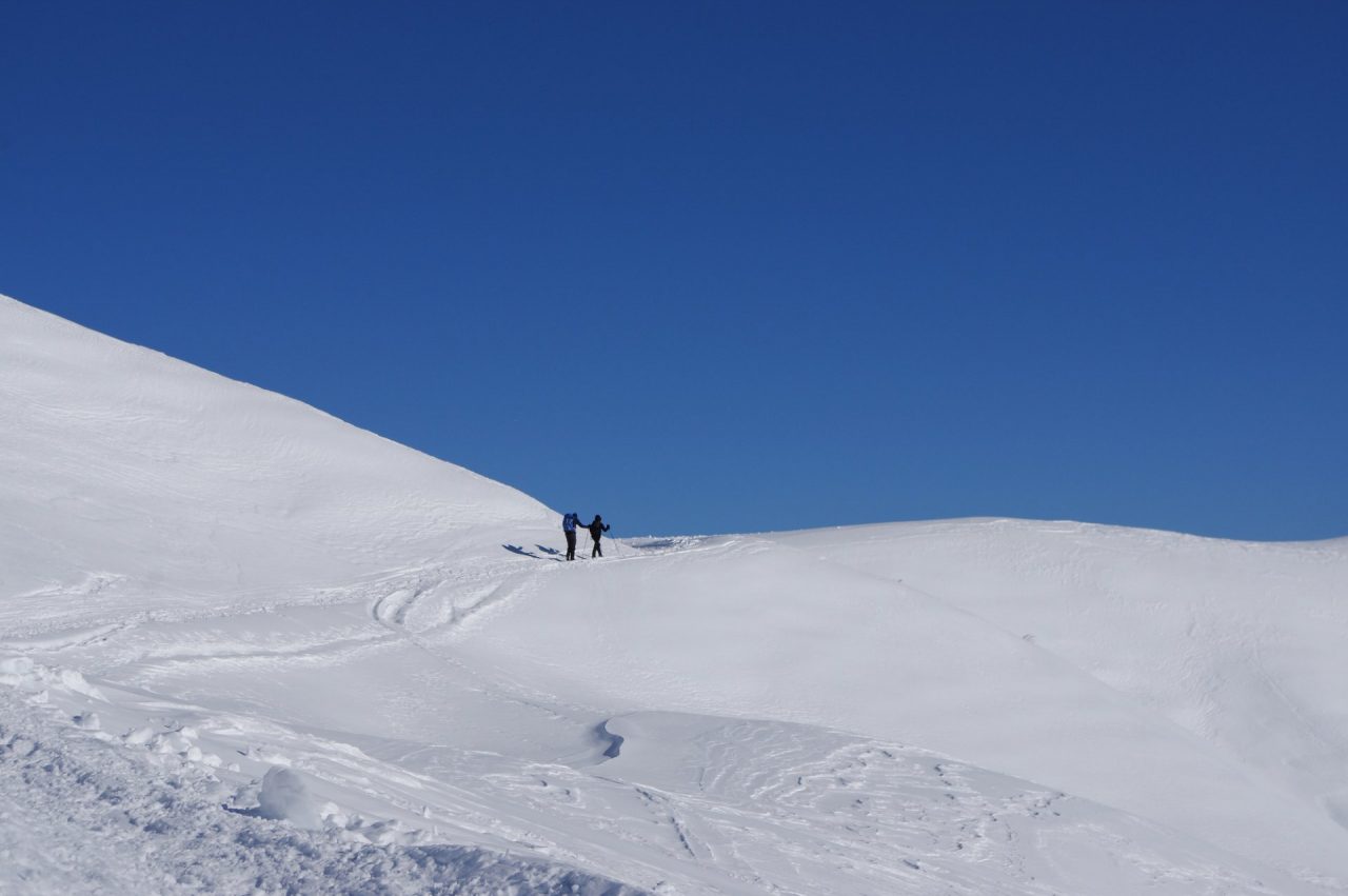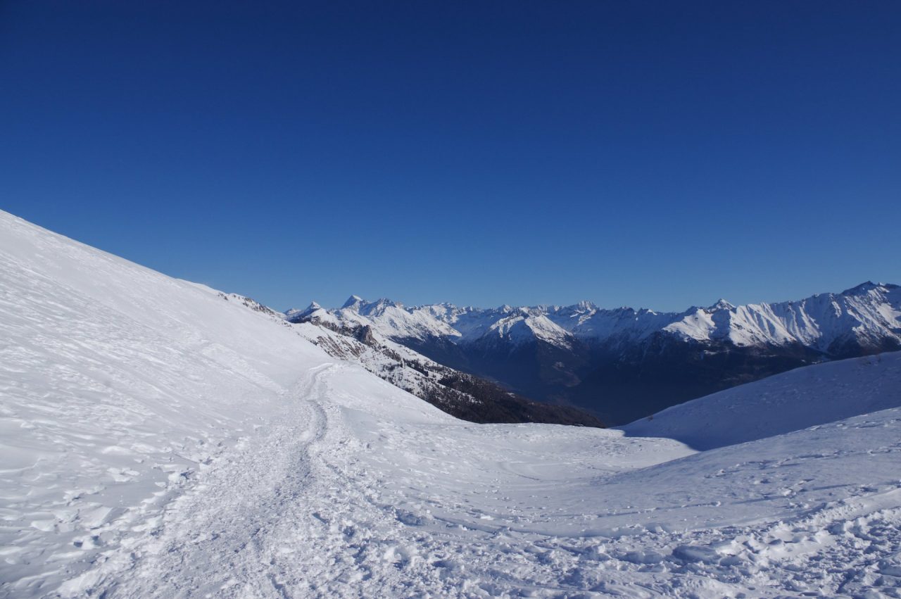 Al rifugio Campione. «Solo del bianco a cui badare» scriveva, nel 1878, Arthur Rimbaud durante il transito dal Passo di San Gottardo. Sono le parole esatte per descrivere il “foglio bianco” che si presenta davanti ai nostri occhi. Siamo in un ambiente spettacolare, dove neve e sole dipingono paesaggi mozzafiato. La traccia continua e sale in direzione del passo omonimo. È l’ultimo sforzo, ma sarà ampiamente ripagato una volta conquistato il valico. Siamo al confine con la Val Camonica e, proprio davanti a noi, appare la sua corona alpina, dove tra tutte le vette spicca maestoso il monte Adamello, inconfondibile per la sua tipica sagoma. Siamo arrivati fino a qua e vale la pena continuare per qualche centinaio di metri fino al rifugio Campione, posto a 1879 metri di quota. La struttura si trova sul confine tra la Val di Scalve e la Val Camonica, tra i comuni di Schilpario, Cerveno, Ono San Pietro, Capo di Ponte e Paisco. Il rifugio è aperto tutti i weekend nella stagione invernale, per la gioia degli escursionisti che raggiungono questo luogo da favola. Per informazioni e prenotazioni: 3472571167.