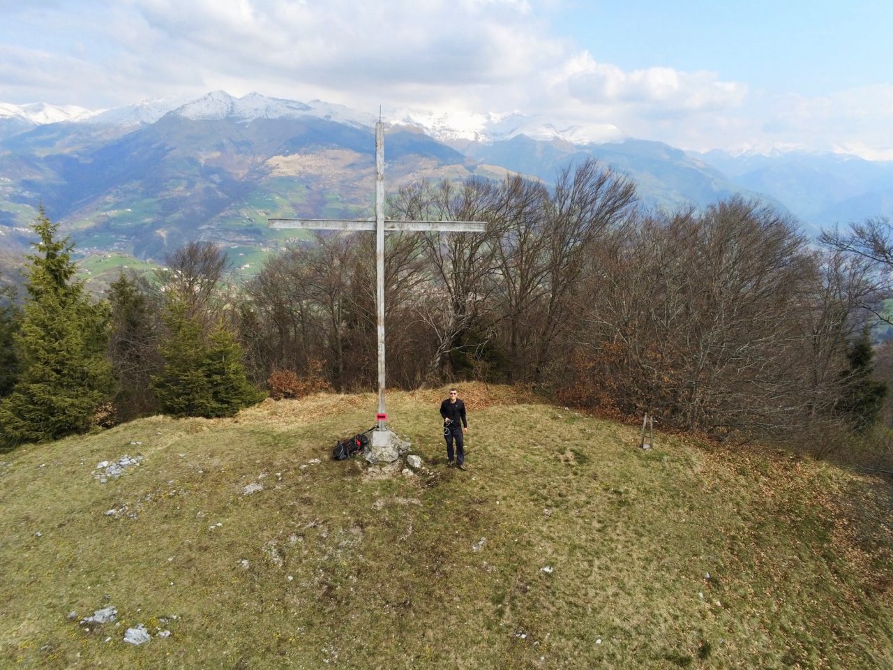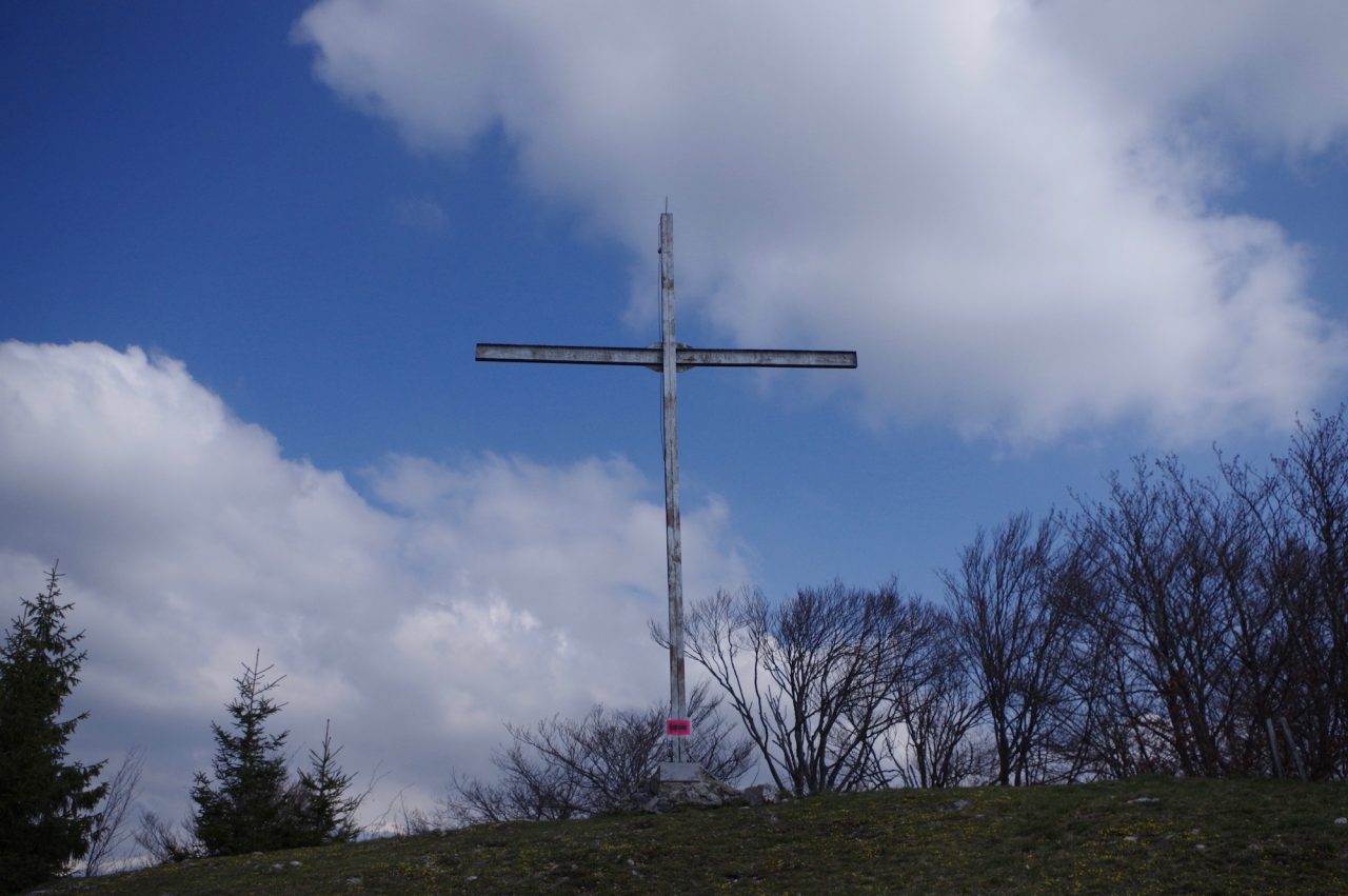 Il monte Tisa. Poco prima della chiesetta si alza il sentiero segnalato, che in circa mezz’ora ci permetterà di raggiungere il nostro obbiettivo. Saliamo nel bosco fino a una pozza d’acqua e a un capanno di caccia, lo costeggiamo e con un ultimo strappo raggiungiamo la cima, dove, a 1317 metri, quasi nascosta tra alberi e cespugli, troviamo una croce in ferro posata dagli alpini di Vertova e Colzate nel 1977. Abbiamo scoperto un’altra montagna dimenticata, lasciata in disparte per gli itinerari più famosi della Val Vertova, che risalgono fino al bivacco Testa e al lontano monte Alben, ben visibile dalla nostra montagna. Siamo nel posto ideale se cerchiamo pace e riposo. Difficile che qualcuno risalga questo cocuzzolo che, nella maggior parte delle cartine topografiche, non viene nemmeno menzionato.