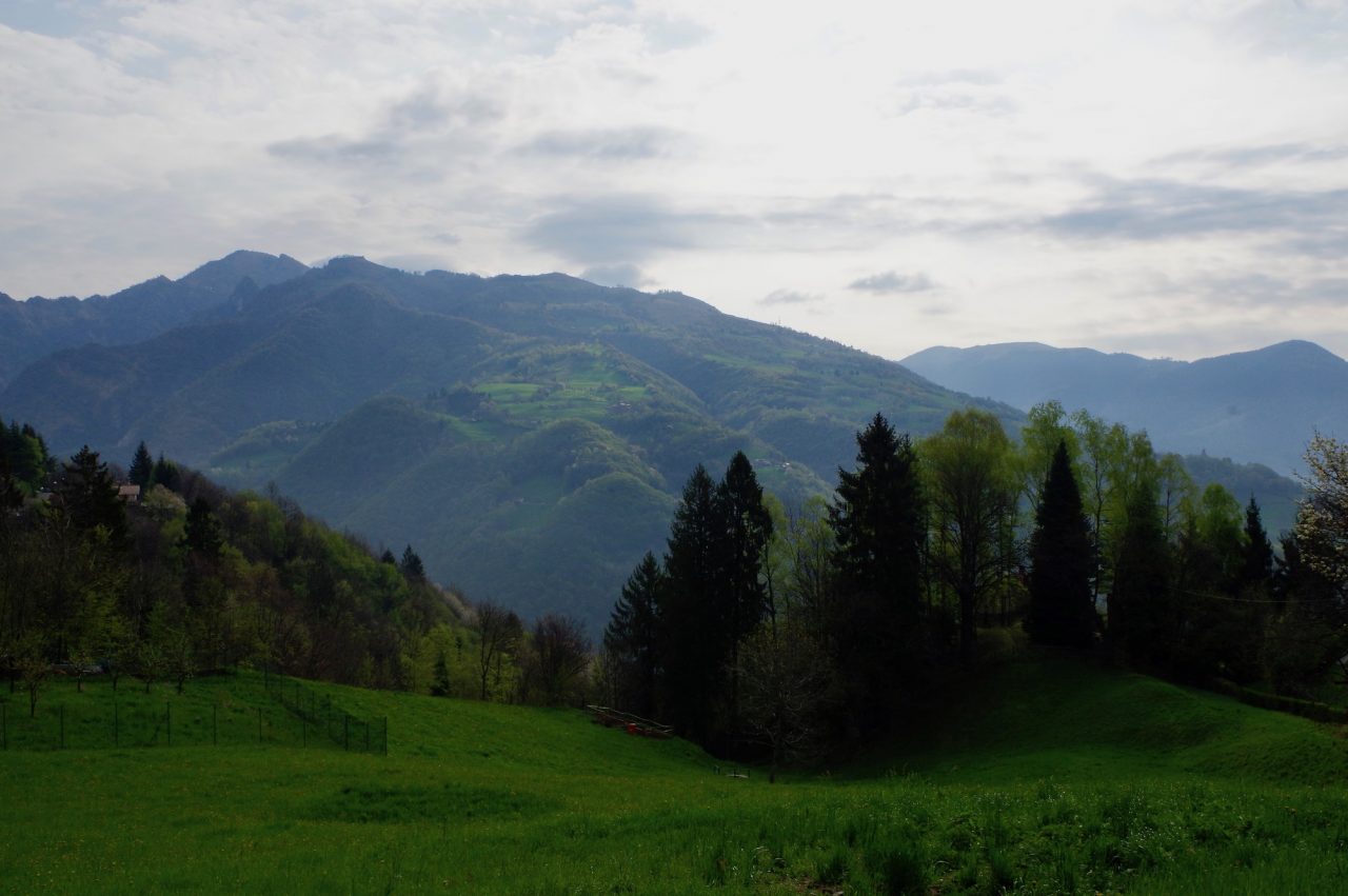 Il ritorno, ad anello. Conquistata anche questa docile montagna, possiamo fare ritorno sui nostri passi fino al sottostante borgo di Cavlera. Poco prima della chiesetta troviamo il segnavia CAI 530, che ci permetterà di chiudere la gita con un percorso ad anello. Il largo sentiero scende tra faggi e betulle fino a toccare i prati della “Crus de Grom”, balcone su tutta la valle e sulle Orobie. Scendiamo lungo la mulattiera che a tratti si apre sull’abitato di Vertova, tra pascoli, boschi e stalle ristrutturate in bellissimi casolari. Il sentiero diventa carrareccia e la carrareccia diventa, dopo alcuni chilometri, strada. Fortunatamente il sentiero taglia in alcuni tratti il sentiero CAI 530 evitando il fastidioso asfalto, scendendo nel bosco ed eludendo i ripidi tornanti. Possiamo gustaci il panorama, lasciarci trasportare dai pensieri e seguire fedelmente il tracciato, che dopo circa un’ora di cammino chiuderà il suo cerchio in piazza Vittorio Veneto, nostro punto di partenza.
