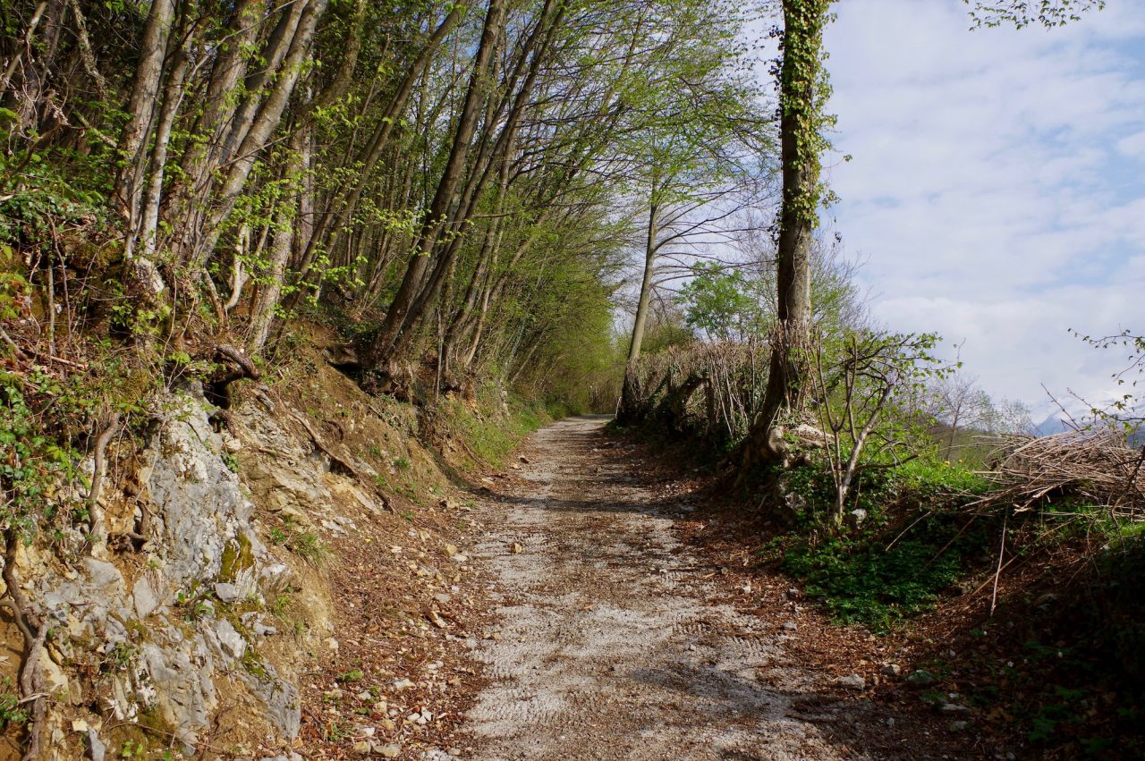 Il sentiero Honio. Lasciamo il santuario e la sua storia alle nostre spalle e continuiamo, ricalcando la strada che in parte taglia i tornanti e risale in direzione dell’abitato di Bondo. Poco prima del paese ritroviamo il segnavia, che in prossimità di una tribulina prosegue alla nostra sinistra. Questo tratto del tracciato, conosciuto come “Sentiero Honio”, prende il nome dalla storica confederazione fra i paesi di Colzate, Vertova e Fiorano al Serio e risale al secolo XIII. Il sentiero prosegue alternando tratti di bosco ad antiche mulattiere, oggi utilizzate per raggiungere i bellissimi borghi visitabili sul percorso, regalando a tratti piacevoli scorci sul Pizzo Formico, sulla Presolana e sulla zona del Monte Vaccaro. Noi continuiamo immersi in questo bellissimo panorama e raggiungiamo una bella cascina in pietra, dove il sentiero ritorna sterrato. Sempre in costante salita, troviamo un segnavia con indicazione Cavlera, che ci invita ad abbandonare il sentiero CAI 518 per piegare ancora una volta a sinistra. Lo imbocchiamo e risaliamo l’ampia carrareccia, che con dieci minuti di cammino ci porterà alle “Case di Cavlera”.