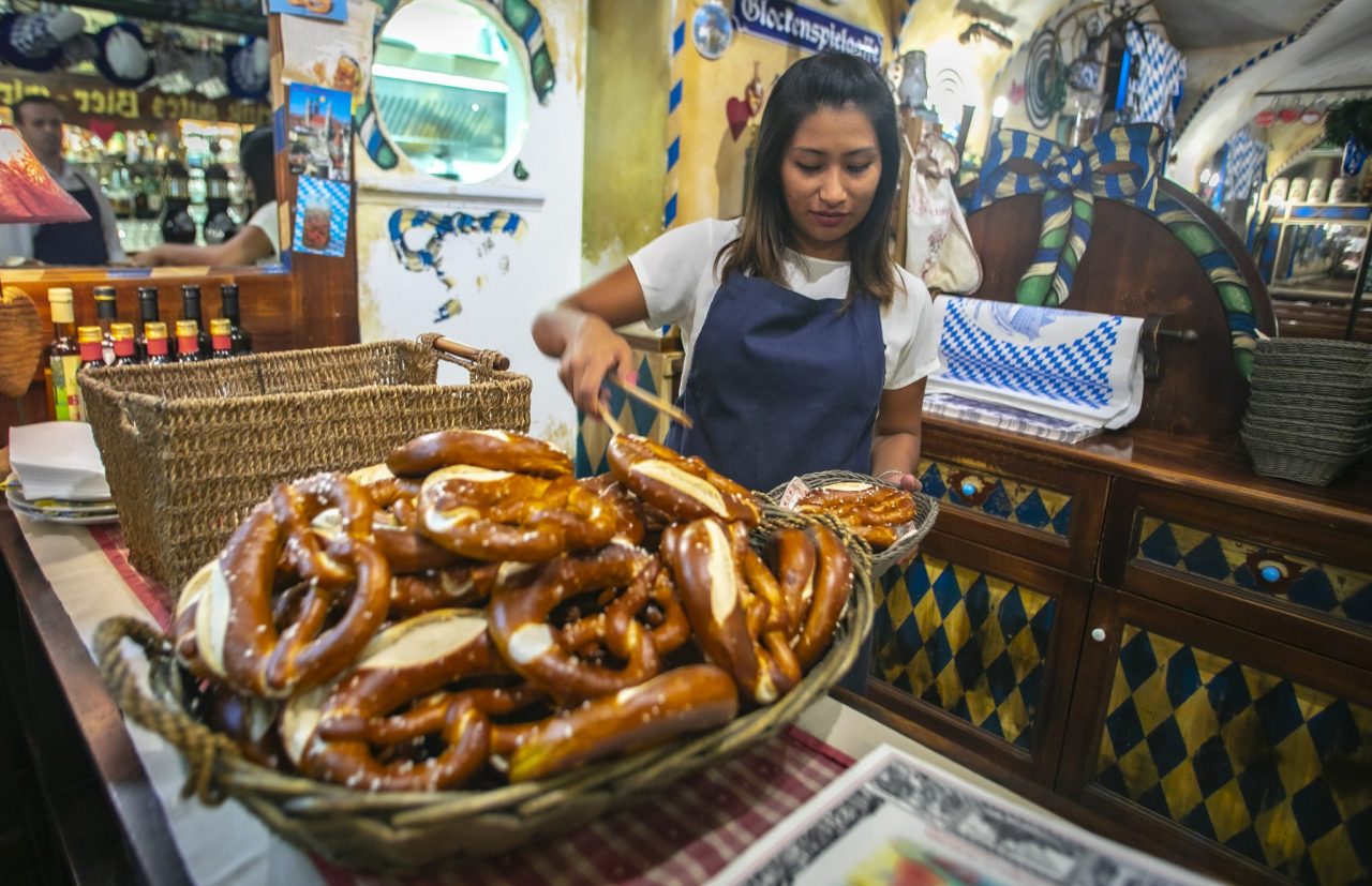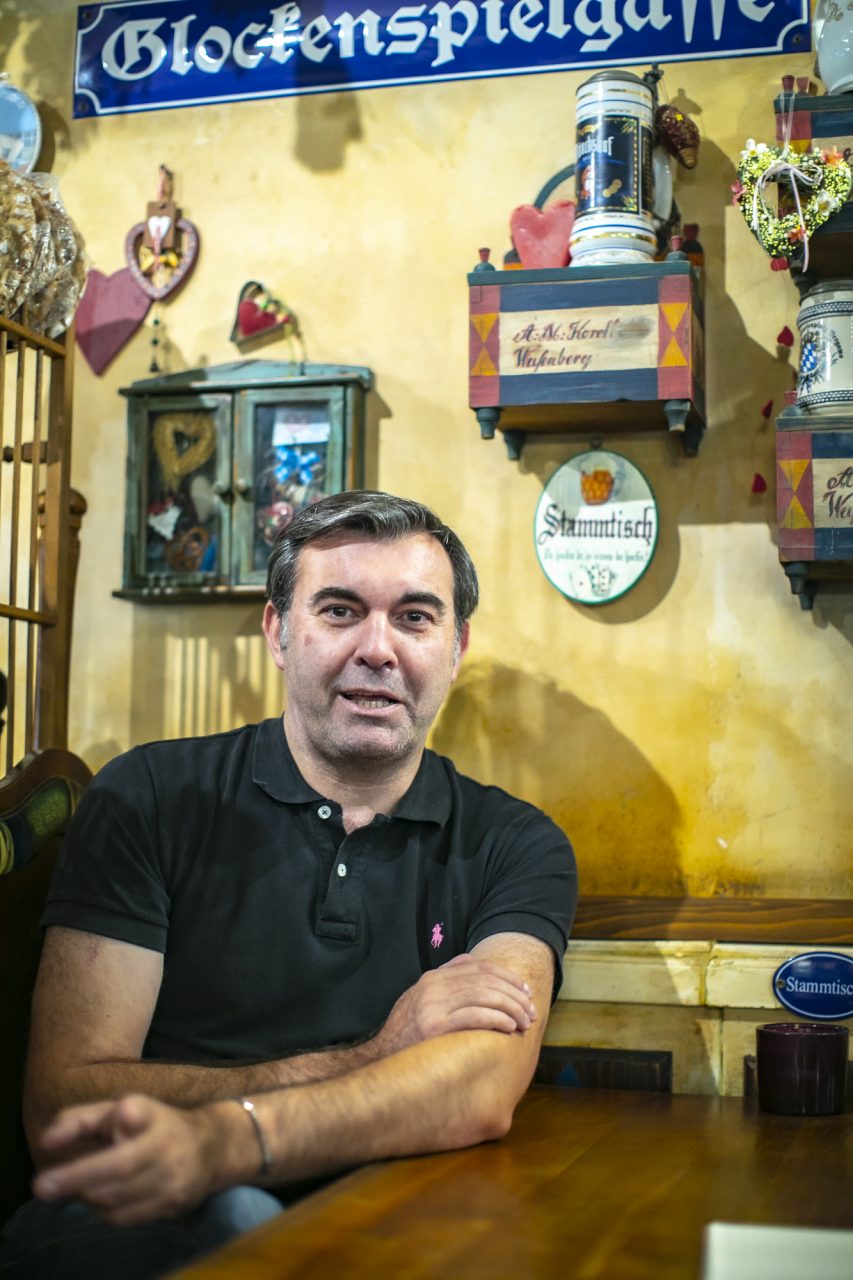 Il tempo della cura dei clienti è il suo preferito: talvolta parla di politica, talvolta di viaggi o di calcio. Lui sa che, ogni sera, quando esce dallo spogliatoio «inizia lo spettacolo». Ricorda di quel maitre, incontrato negli anni della gavetta, che durante le pause leggeva il vocabolario e diceva «altrimenti non capisco cosa mi dicono». «Aveva ragione – commenta Silvano – devi sapere un po’ di tutto e ascoltare non solo con le orecchie. Dal tono che usano al telefono, io capisco se metterli in un tavolo più tranquillo». Spesso nel pomeriggio lo si vede girare in via Pignolo, saluta i colleghi degli altri negozi, controlla che le piante messe dai residenti siano bagnate, fa merenda nel bar o dai ragazzi della nuova pizzeria: «La via è una famiglia. Non c’è concorrenza e magari aprissero altre attività! Sono energia nuova e insegnano sempre qualcosa e poi bisogna far girare l’economia e far divertire la gente». Seduti allo StammTisch, tra una birra, un bretzel e dello speck saporito, ci avvolge un profumo di pane appena sfornato: Silvano ce lo mostra con orgoglio, ridacchia e dice: «Pane ai cinque cereali, dovevo accendere il forno prima, ma mi sono messo a chiacchierare con una vicina ed è lievitato troppo. Non è bellissimo?». A proposito di bellezza, al Marienplatz occorrerebbe una giornata intera solo per guardarsi intorno: dalla silenziosa via Pignolo si entra nel mondo incantato della Baviera tra cuori di latta, modellini di aeroplani, attrezzi da cucina di una volta, scatole magiche e trofei. Il cestino del pane fatto in casa è il benvenuto del locale, mentre uno stinco fumante già sfrigola sul fuoco. La fame si fa sentire. Ultima domanda: tra wurlstel, canederli e gulashsuppe, qual è il suo piatto preferito? «Gli gnocchi della mamma!».
