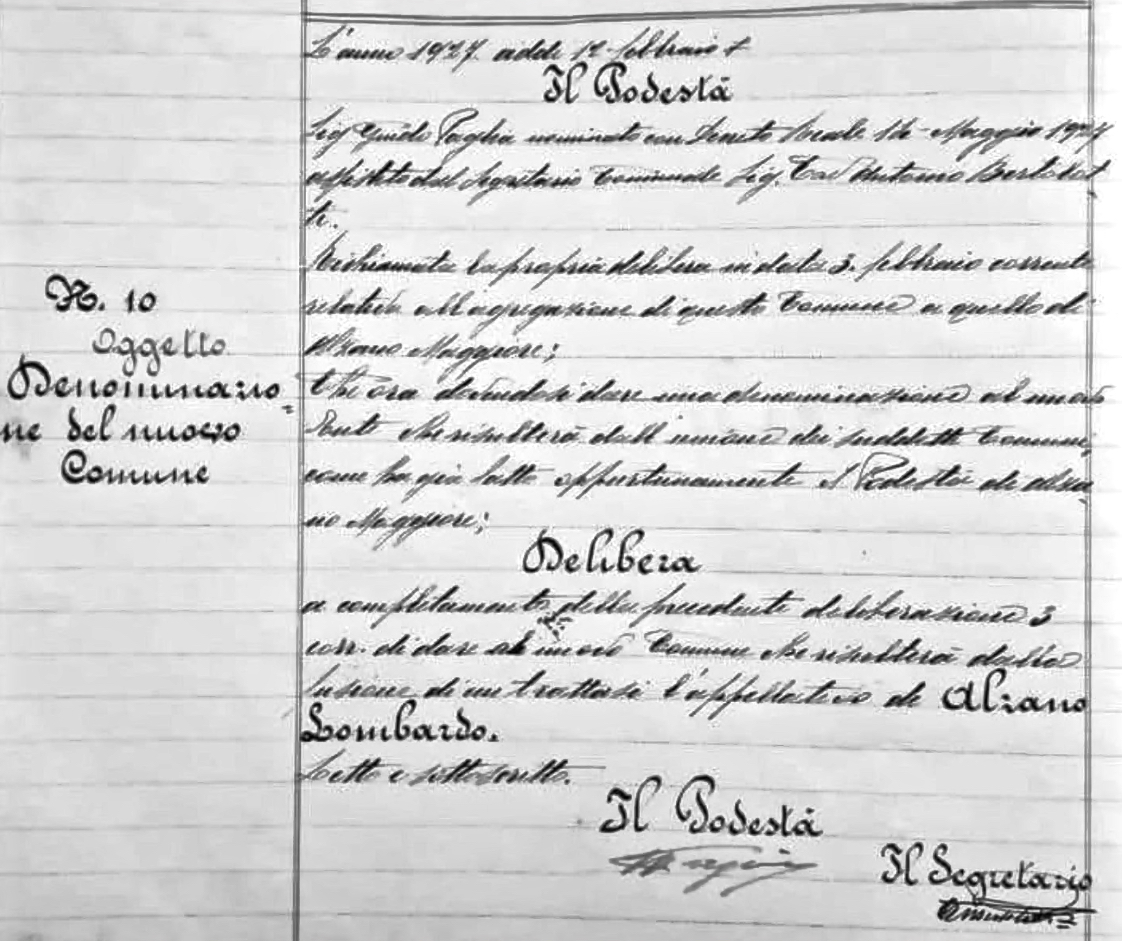 L’appellativo “Lombardo” fu dato ad Alzano per due motivi principali: da un lato per distinguere il Comune seriano dagli altri enti con un nome simile già diffusi in tutta Italia; dall’altro perché negli anni Venti si era particolarmente diffusa la prassi di aggiungere un riferimento regionale o geografico per sottolineare l’appartenenza territoriale.