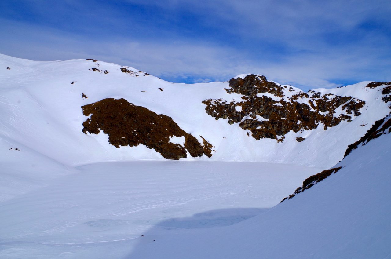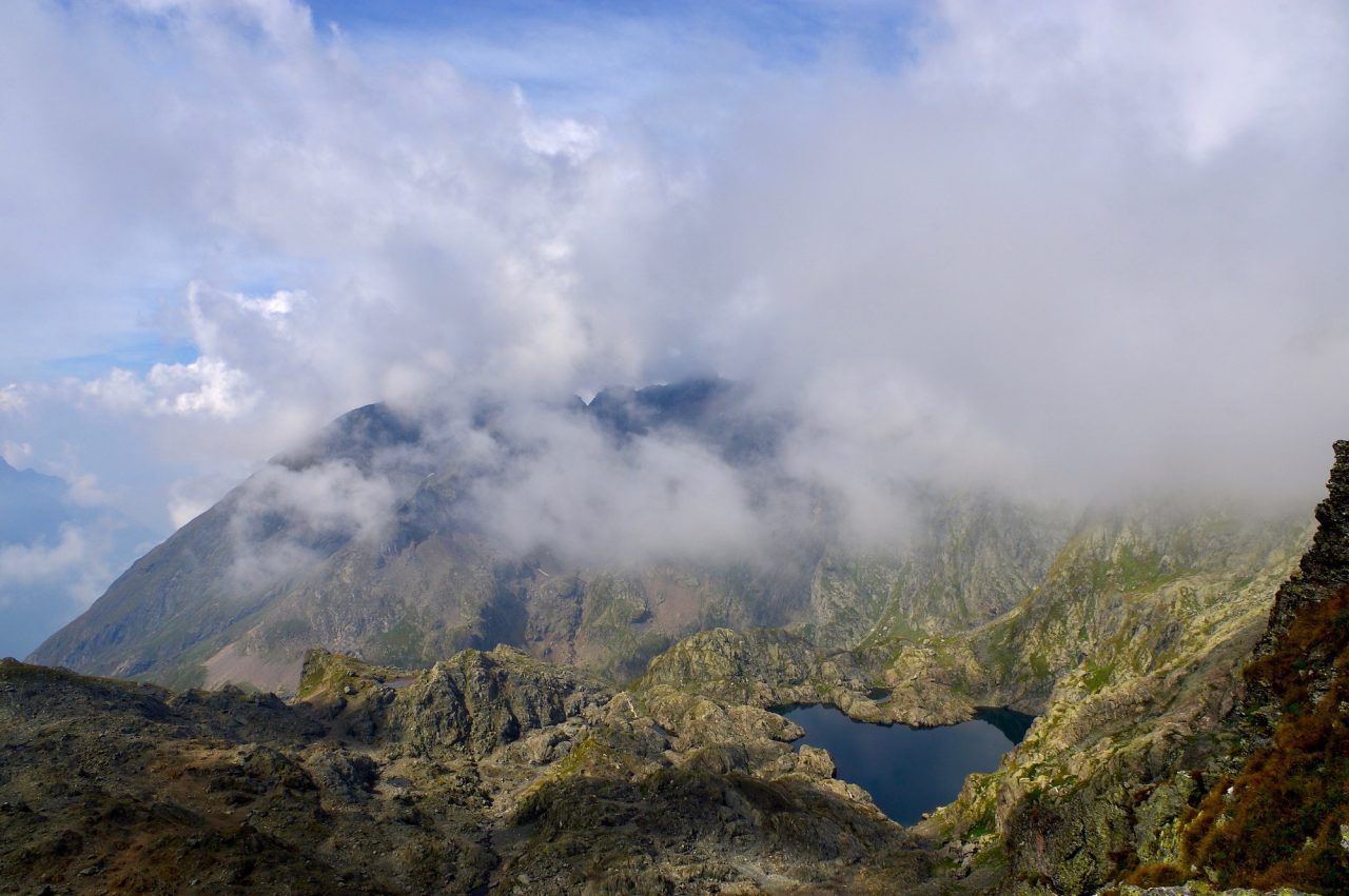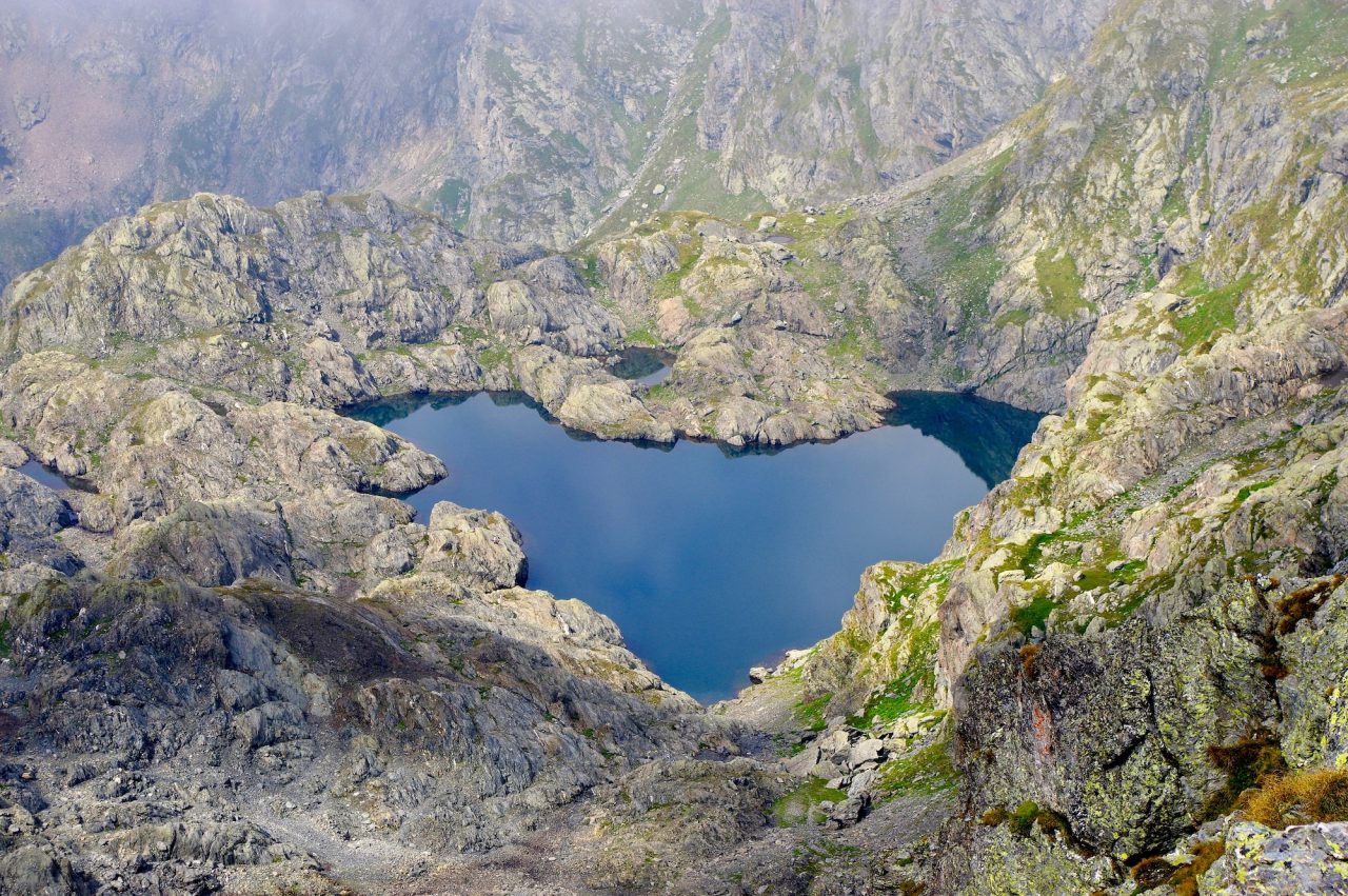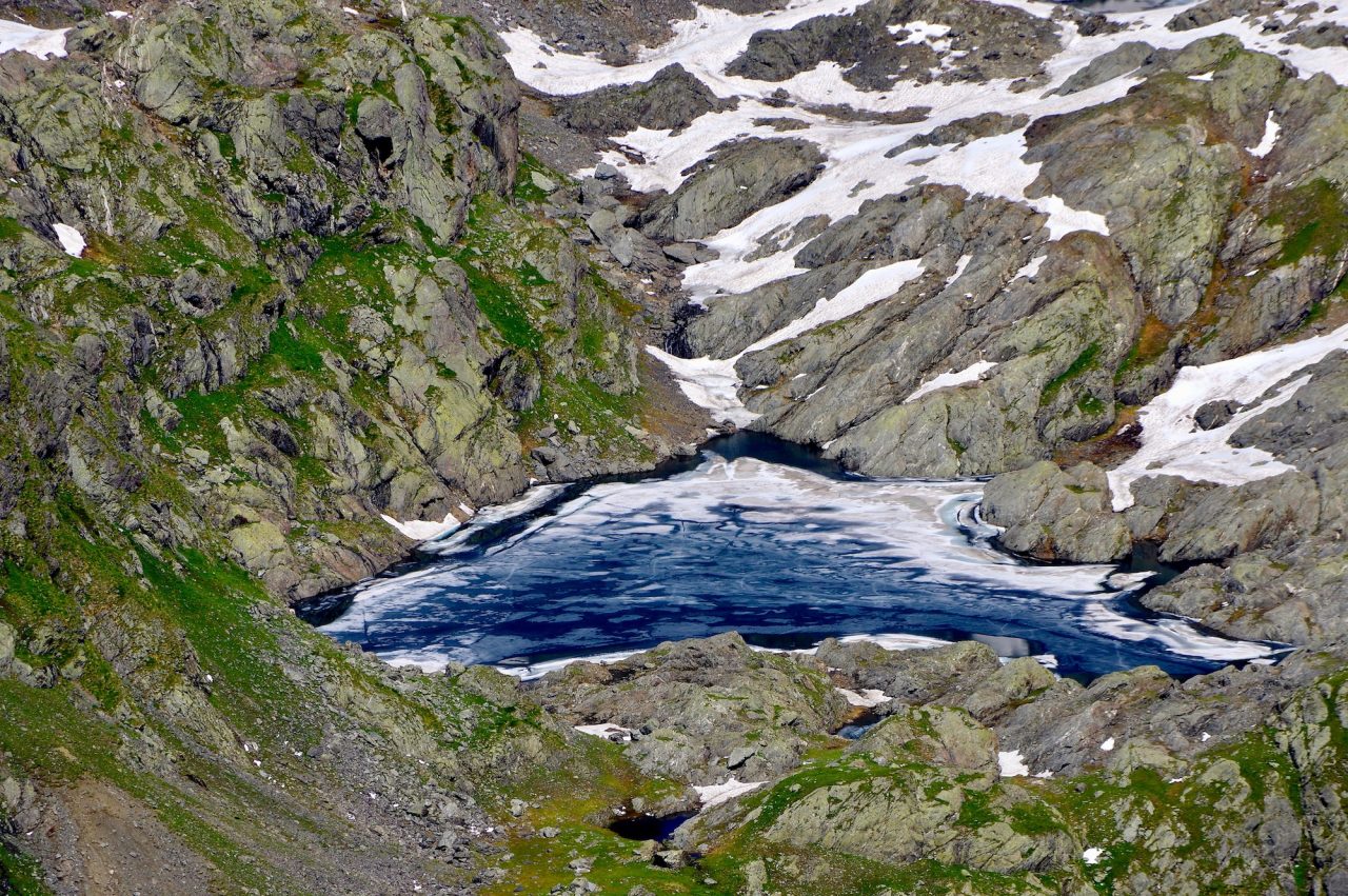 Nella conca ai piedi delle Cime di Caronella e del Pizzo del Diavolo della Malgina troviamo il lago più alto e suggestivo delle Orobie, il Gelt, cuore pulsante delle nostre montagne. Questa perla, che dall’intaglio soprastante il Passo di Caronella disegna la chiara forma di un cuore, si trova a 2562 metri di altitudine ed è il lago alpino naturale più alto delle nostre montagne. Per raggiungerlo servono sudore e fatica… Vanno messe in conto quasi otto ore di cammino: sono circa 25 km (andata e ritorno) con 1700 metri di dislivello positivo. Il percorso inizia da Valbondione, lungo il sentiero CAI 305 che sale ai rifugi Curò e Barbellino. Raggiunto quest’ultimo dobbiamo proseguire lungo il segnavia CAI 308, questa volta con indicazione il Passo di Caronella. Lungo il tragitto tocchiamo il Bivacco A.E.S. (M.2605), ex polveriera militare risalente alla Grande Guerra, e successivamente il Rifugio A.E.S., posto al Passo di Caronella e purtroppo chiuso. Sono gli ultimi sforzi. Per raggiungere il lago dobbiamo piegare a sinistra e risalire il ripido pendio di sfasciumi che conduce all’intaglio soprastante. Sotto di noi, cento metri più in basso, ecco il lago, congelato per quasi dieci mesi all’anno. Non a caso, Gelt, che tradotto dal dialetto bergamasco significa gelato.