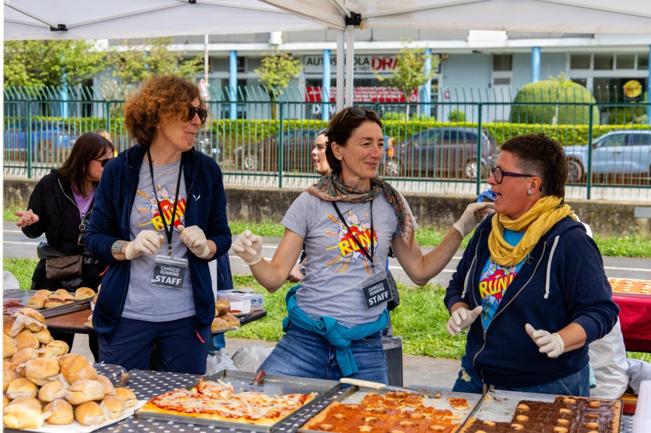 Le facce dei volontari erano illuminate più che altro da lampi e fulmini, la mattina di domenica 19 aprile, ore 5.30, dopo mesi di preparativi nei ritagli di tempo rubati agli affetti, ai diletti e spesso anche al lavoro. Occhi puntati sulle app del meteo, con frasi del tipo «Dai, secondo 3bMeteo adesso smette», o «il radar di MeteoSwiss dice che dalle 8 la perturbazione se ne va, ma molti nel frattempo potrebbero rinunciare». La certezza di aver fatto tutto al meglio, nelle settimane precedenti, per offrire un’organizzazione che mantenesse fede all’ottima fama della Camozzi Running (ma anche di più), accompagnata dallo spirito di gruppo di gente che pensa positivo, anche quando grandina sulle proprie certezze, ha comunque riportato il sereno.