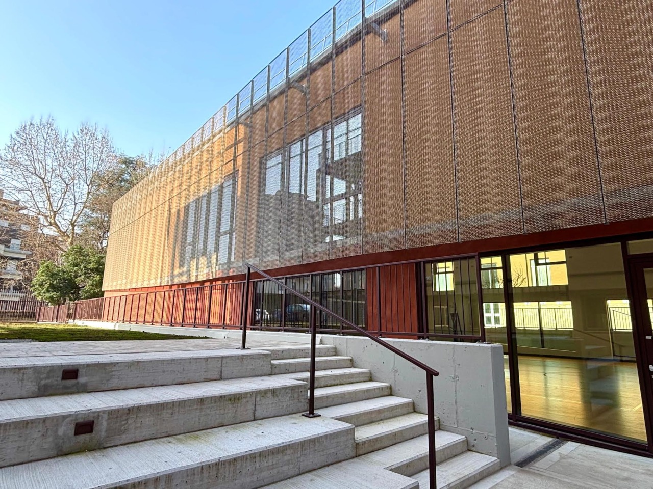 Sono terminati i lavori del Lotto 1 della Scuola Mazzi-Calvi a Bergamo, con nuovi volumi dedicati a palestra, sala polivalente e due mense. Gli spazi, di alta qualità tecnica e architettonica, potranno essere utilizzati sia dalla comunità scolastica sia dalla cittadinanza in orario extrascolastico.