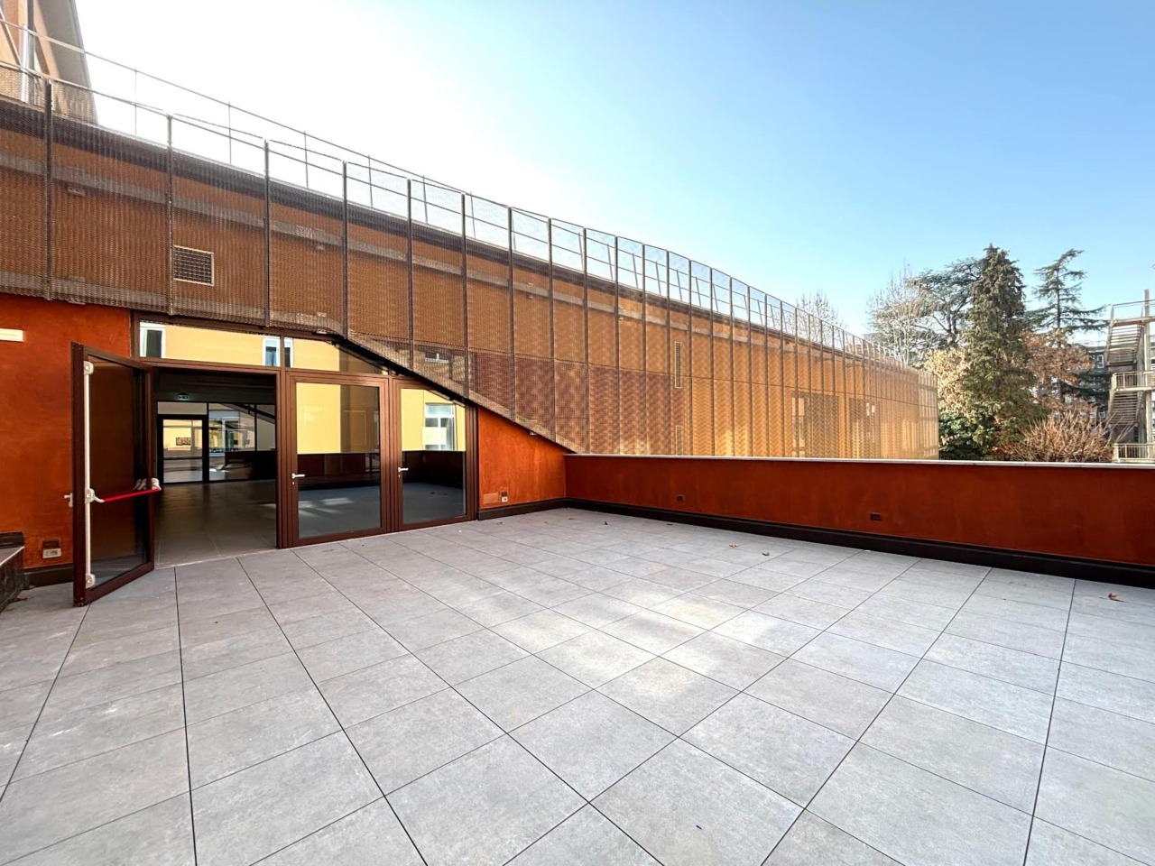 L’edificio presenta rivestimenti metallici di facciata e facciate continue vetrate con profili in alluminio. In copertura è stato installato un generatore fotovoltaico da 42,92 kWp. Il riscaldamento è a pannelli radianti integrati nei solai e pavimenti, mentre raffrescamento e ricambio d’aria sono gestiti da unità aerauliche e ventilconvettori ad alta efficienza con recupero energetico. Questi sistemi garantiscono comfort termico in ogni stagione, con particolare attenzione all’efficienza e alla sostenibilità.