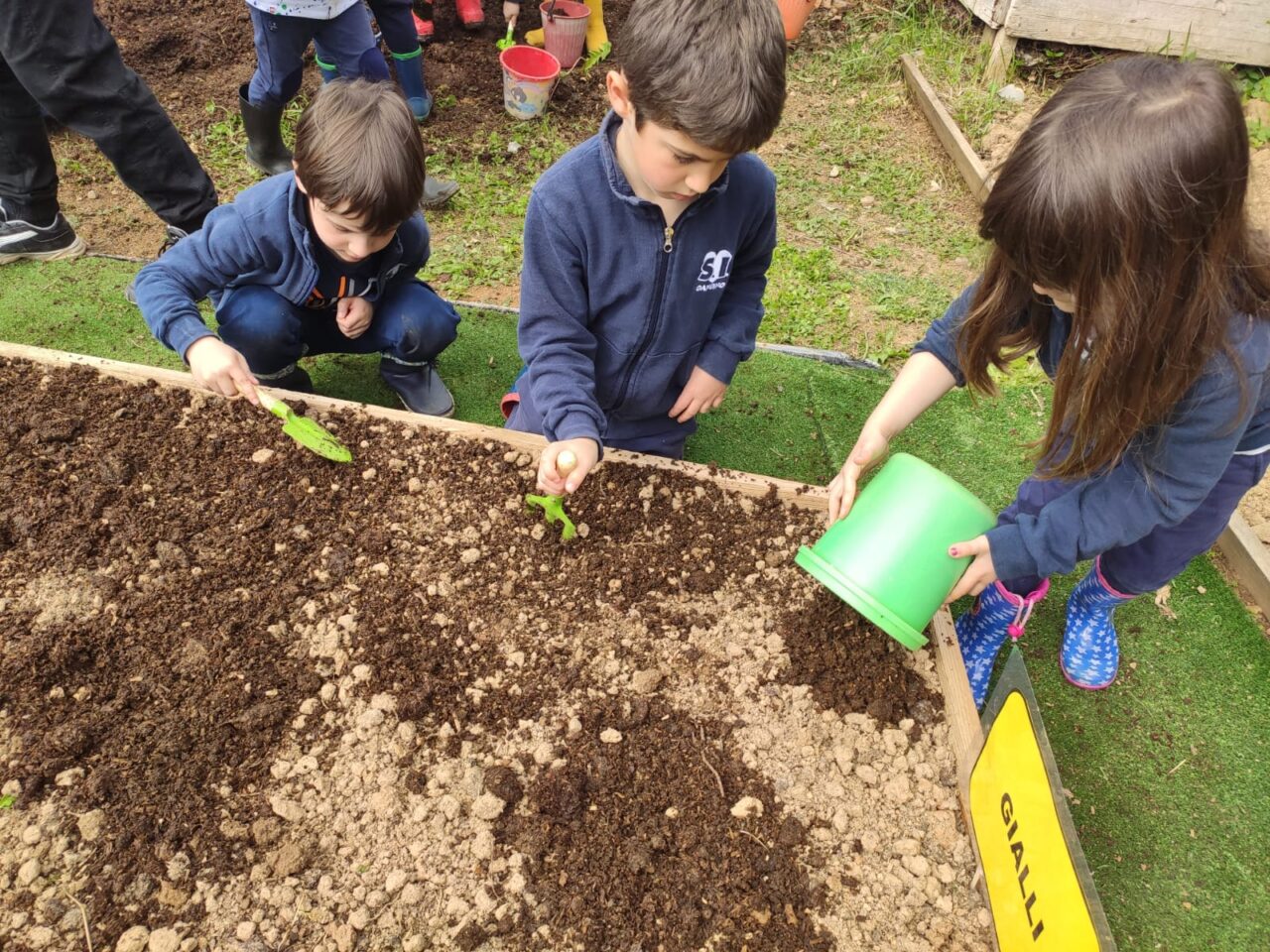 La qualità delle proposte didattiche è particolarmente articolata e dialoga spesso con il territorio: nelle ultime settimane i bambini, per esempio, sono andati alla scoperta del Mercato Agricolo a chilometri zero, hanno avviato coltivazioni in proprio di ortaggi e verdure (da assaggiare poi durante il pranzo scolastico) e incontrato un giovane apicoltore per scoprire l’indispensabile attività delle api.