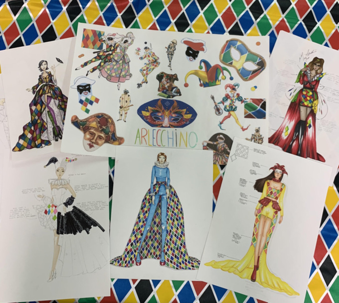 La prof.ssa Sibella ha poi illustrato a colleghi e studenti dell’Istituto Caniana il progetto artistico. A questo punto gli studenti stessi si sono cimentati nella parte grafica di progettazione dei bozzetti personali, tenendo conto delle richieste del direttore artistico: «un’Arlecchina spettacolare in chiave moderna con grande strascico ad effetto sorpresa».
