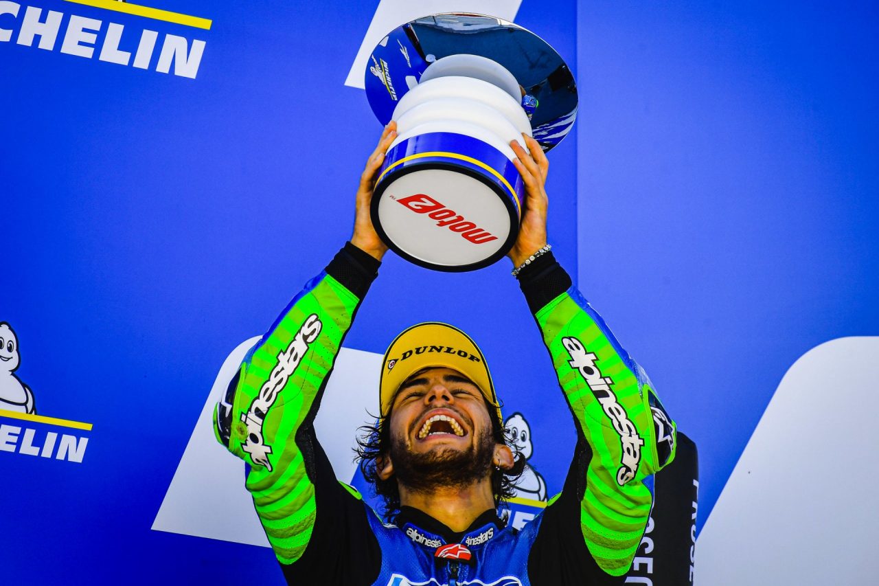 I rivali cadono, Enea Bastianini ringrazia. Ad Aragon è secondo dietro a San Lowes ed è il nuovo leader della classifica iridata. Proprio con due lunghezze sul britannico di (155 contro 153). Luca Marini resta a 150 con il secondo “zero” consecutivo, ma stavolta si sdraia dopo pochi chilometri. Destino analogo e ancor più amaro per Marco Bezzecchi che, a due tornate dal termine, era in testa e pregustava il successo. Caduto mentre era al comando anche Fabio Di Giannantonio. A completare il podio, lo spagnolo Jorge Martin. E dire che gli orari erano stati posticipati per le temperature troppo rigide. In realtà questa Moto 2 è più bollente che mai.