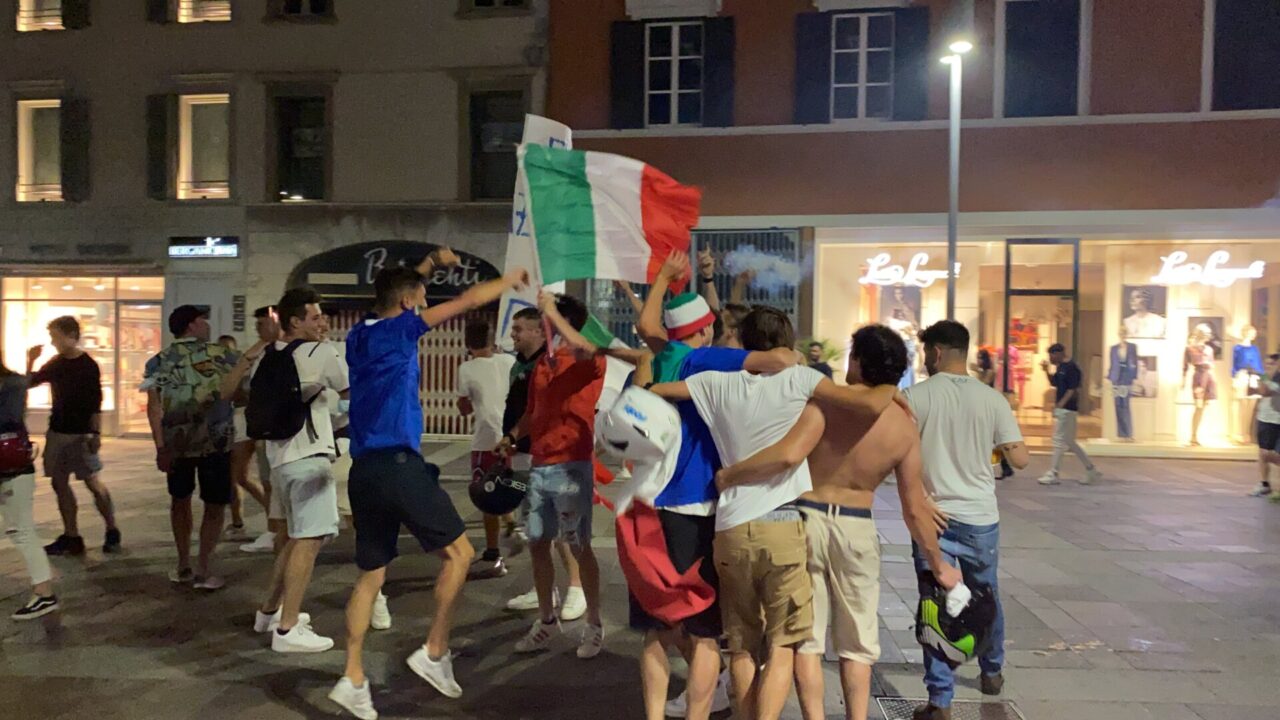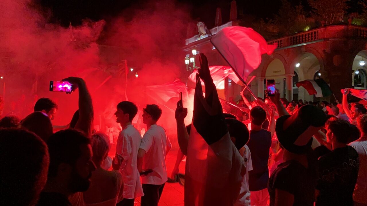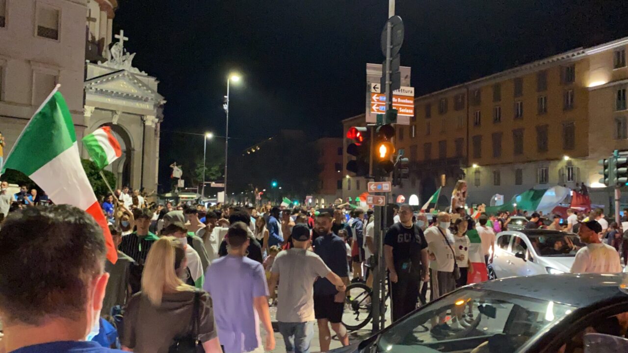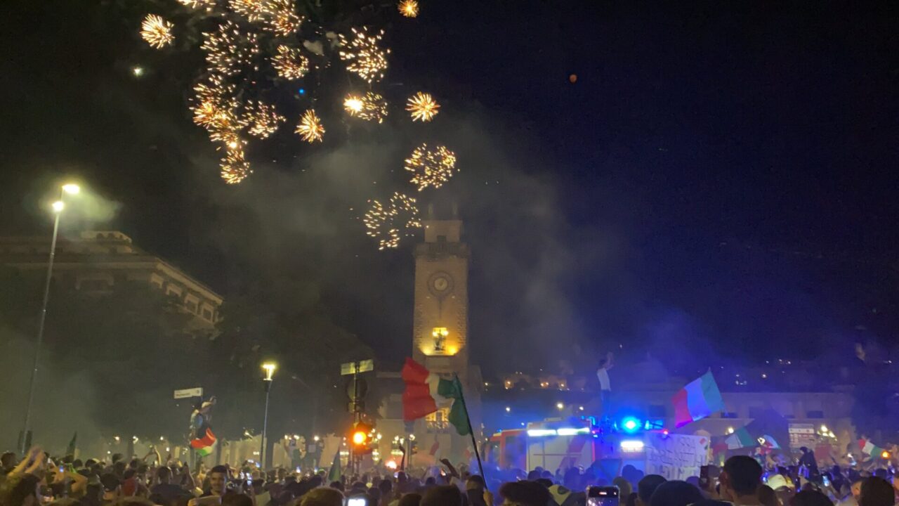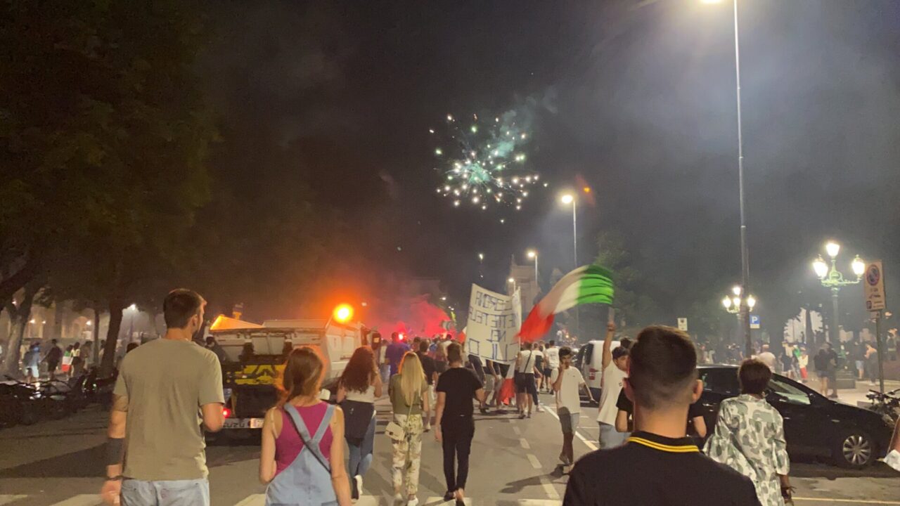 In tanti sono usciti di casa da soli, che tra le mura non ci potevano stare. Una bandiera, una bicicletta e via: ne abbiamo visti un bel po’ così, anche in periferia. E i monopattini, ormai entrati di diritto nel novero dei mezzi di trasporto più utilizzati, hanno fiancheggiato auto e scooter nei caroselli per le vie del centro. Dove c’è finita tanta gente, in ogni modo: un rito collettivo che si ripete, ad ogni vittoria, e che solo il calcio riesce a realizzare con tale successo.