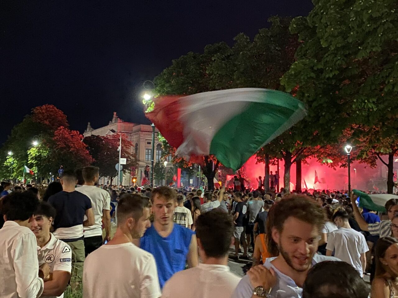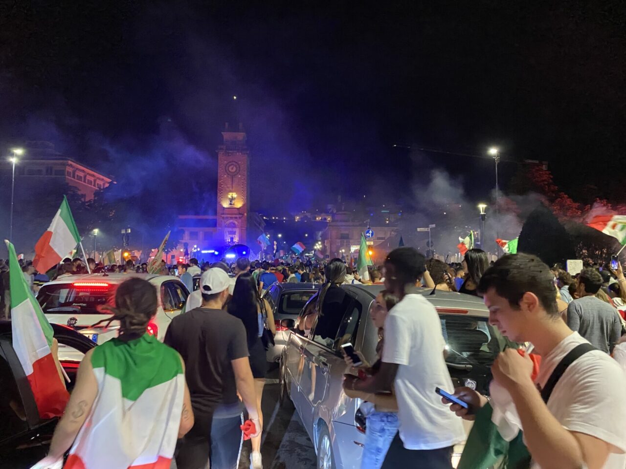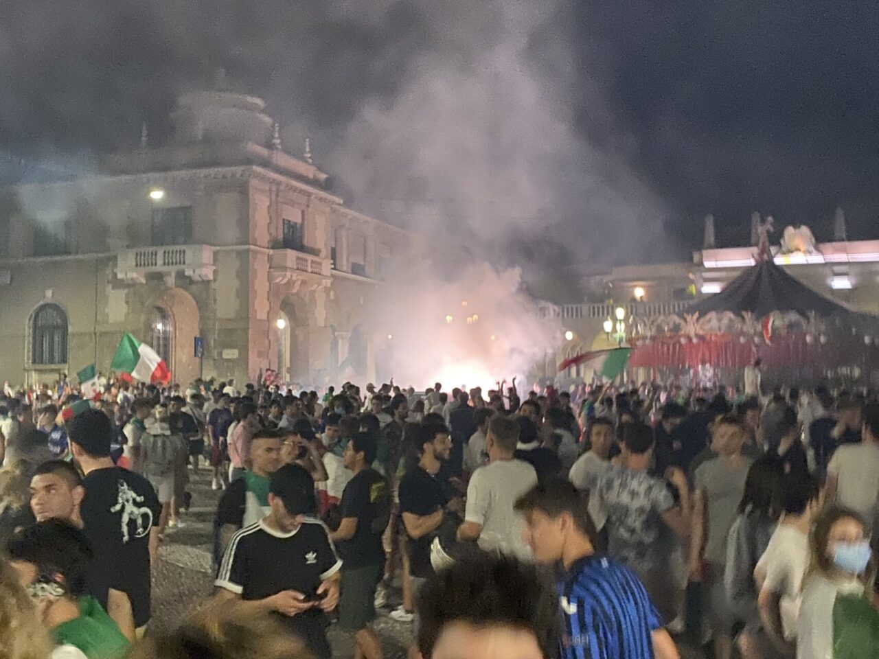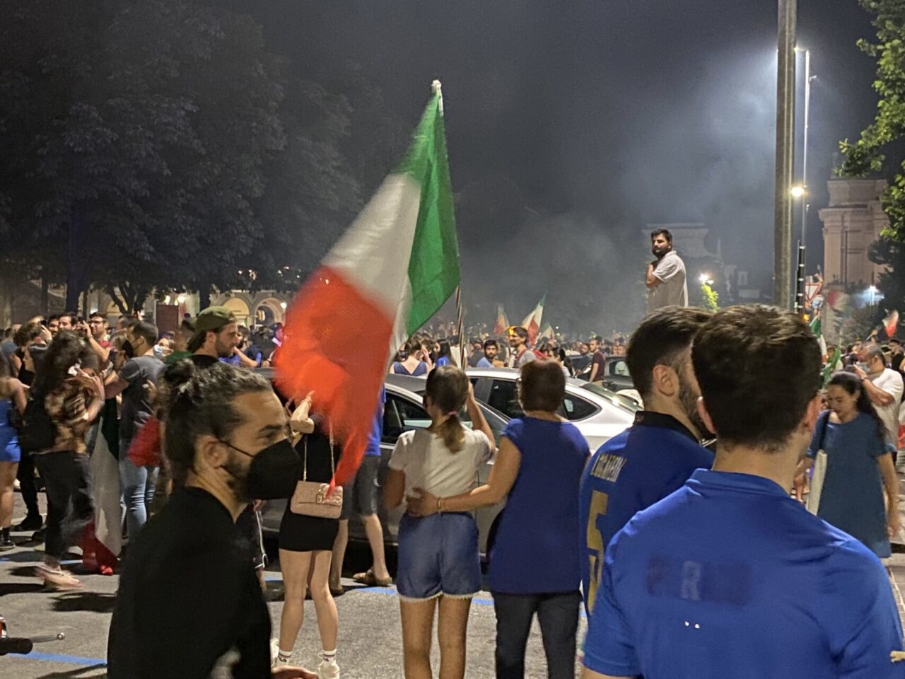 In tanti sono usciti di casa da soli, che tra le mura non ci potevano stare. Una bandiera, una bicicletta e via: ne abbiamo visti un bel po’ così, anche in periferia. E i monopattini, ormai entrati di diritto nel novero dei mezzi di trasporto più utilizzati, hanno fiancheggiato auto e scooter nei caroselli per le vie del centro. Dove c’è finita tanta gente, in ogni modo: un rito collettivo che si ripete, ad ogni vittoria, e che solo il calcio riesce a realizzare con tale successo.