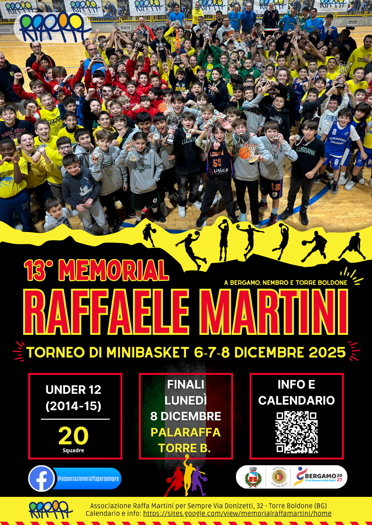 Il week-end alle porte (6, 7 e chiusura 8 dicembre) porta in dote un’altra importante iniziativa d’ambito minibasket partorita dall’Associazione “Raffa per sempre”, un ente il cui scopo è rinverdire il ricordo di Raffaele Martini, noto e apprezzato coach bergamasco scomparso prematuramente nell’agosto del 2011.