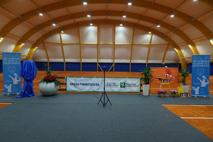 Con questa inaugurazione, la Cittadella della sport in via Monte Gleno si arricchisce di due nuovi campi da tennis in terra rossa battuta, fortemente voluti e realizzati dall’Accademia dello Sport per la Solidarietà di Bergamo, in collaborazione con il Comitato Provinciale del Csi,  Regione Lombardia, la Provincia e il Comune di Bergamo. Un’opera che ha ricompreso l’ammodernamento dei due campi scoperti esistenti con la tecnologia fornita da Red Plus (e contestuale adeguamento dell’impianto di illuminazione) e la costruzione ex novo di due terreni coperti con le medesime caratteristiche in tensostruttura lamellare, con annessi spogliatoi.