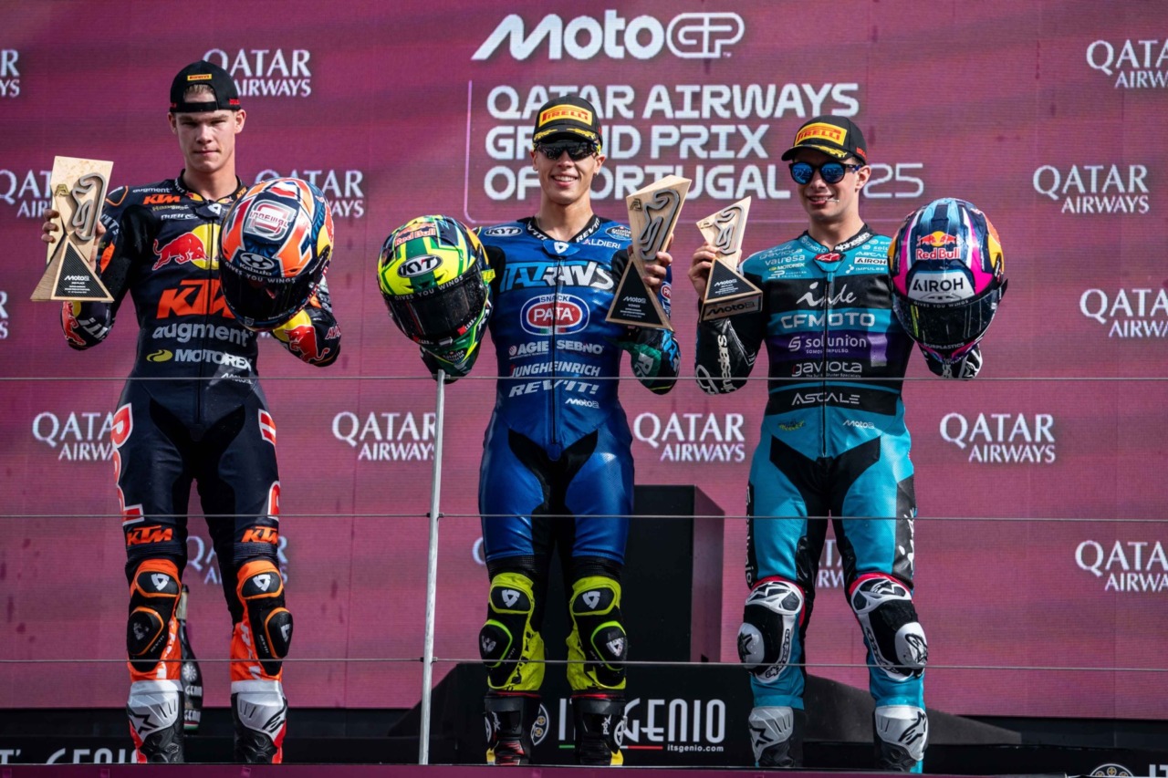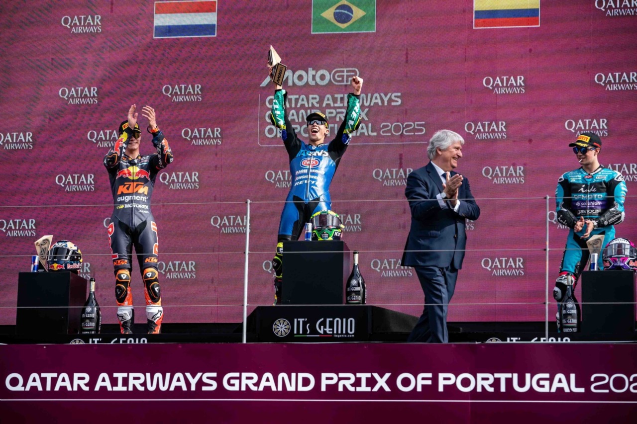 Corsi e ricorsi storici, sebbene Diogo Moreira abbia soltanto 21 anni. A Portimao, in Portogallo, il talentuoso brasiliano dell’Italtrans Racing Team è salito ieri (domenica 9 novembre) sul gradino più alto del podio della gara di Moto2, rivivendo le emozioni del 2023, quando in Moto3 aveva conquistato proprio qui il suo primo podio mondiale.