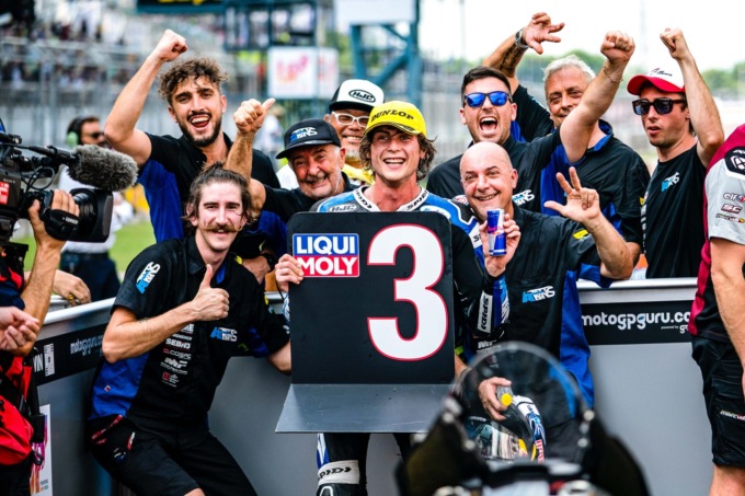 Il tredicesimo appuntamento del Campionato del Mondo MotoGp ha visto il team bergamasca tornare su quel podio, confermando l’alto livello tecnico e agonistico della squadra. È stata una gara caratterizzata da temperature alte e un clima afoso, divisa in due dalla bandiera rossa esposta poco dopo la partenza per un incidente e accorciata quindi a dodici giri.
