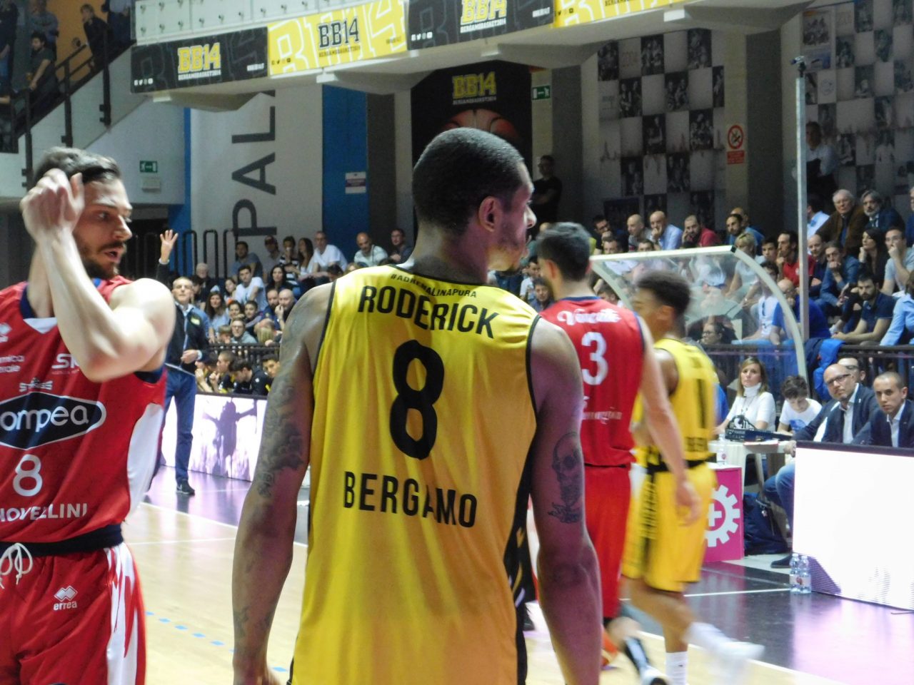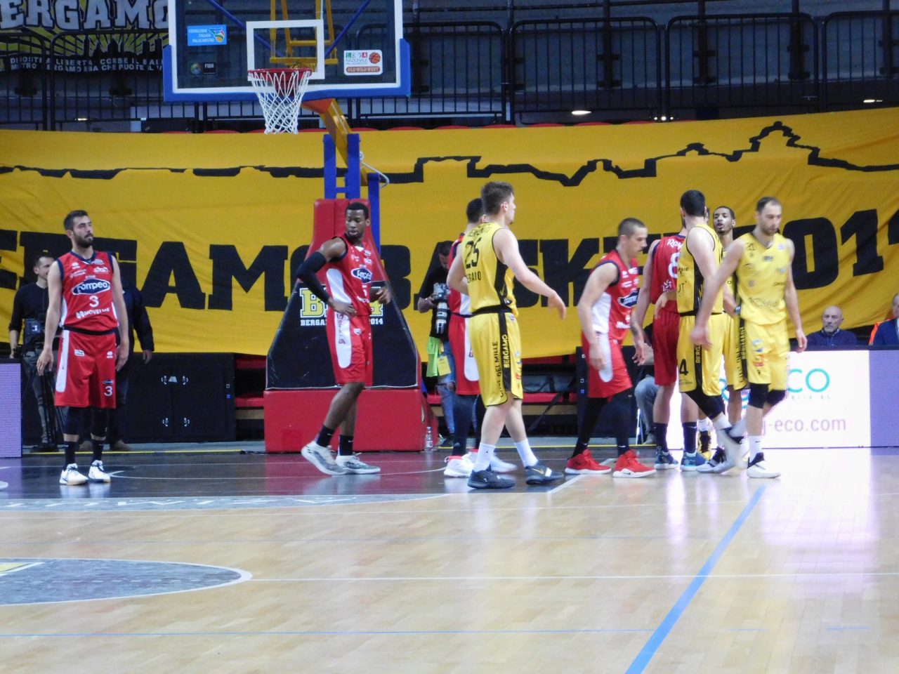 Bergamo, un pareggio (1-1) nella serie con la Pompea Mantova che fa male, e tanto. Tra i principali temi tattici del doppio confronto c’è la discontinuità in fase difensiva offerta dagli orobici, e soprattutto i tanti rimbalzi offensivi strappati dai virgiliani, con annesso contorno di extra-possessi che hanno permesso ai Finelli-boys di mascherare un sostanziale gap tecnico. Entrando più nel dettaglio, i gialloneri hanno prima conquistato gara-1 (94-85; Taylor 34, Roderick 25, Zucca 9) grazie a un rush finale nel contesto di un match intenso ed equilibrato, dove Sergio e compagni hanno spesso inseguito nel punteggio e subìto le sfuriate perimetrali di un surreale Visconti (24 punti con 7/14 dall’arco per il classe ’98 scuola Reyer Venezia).