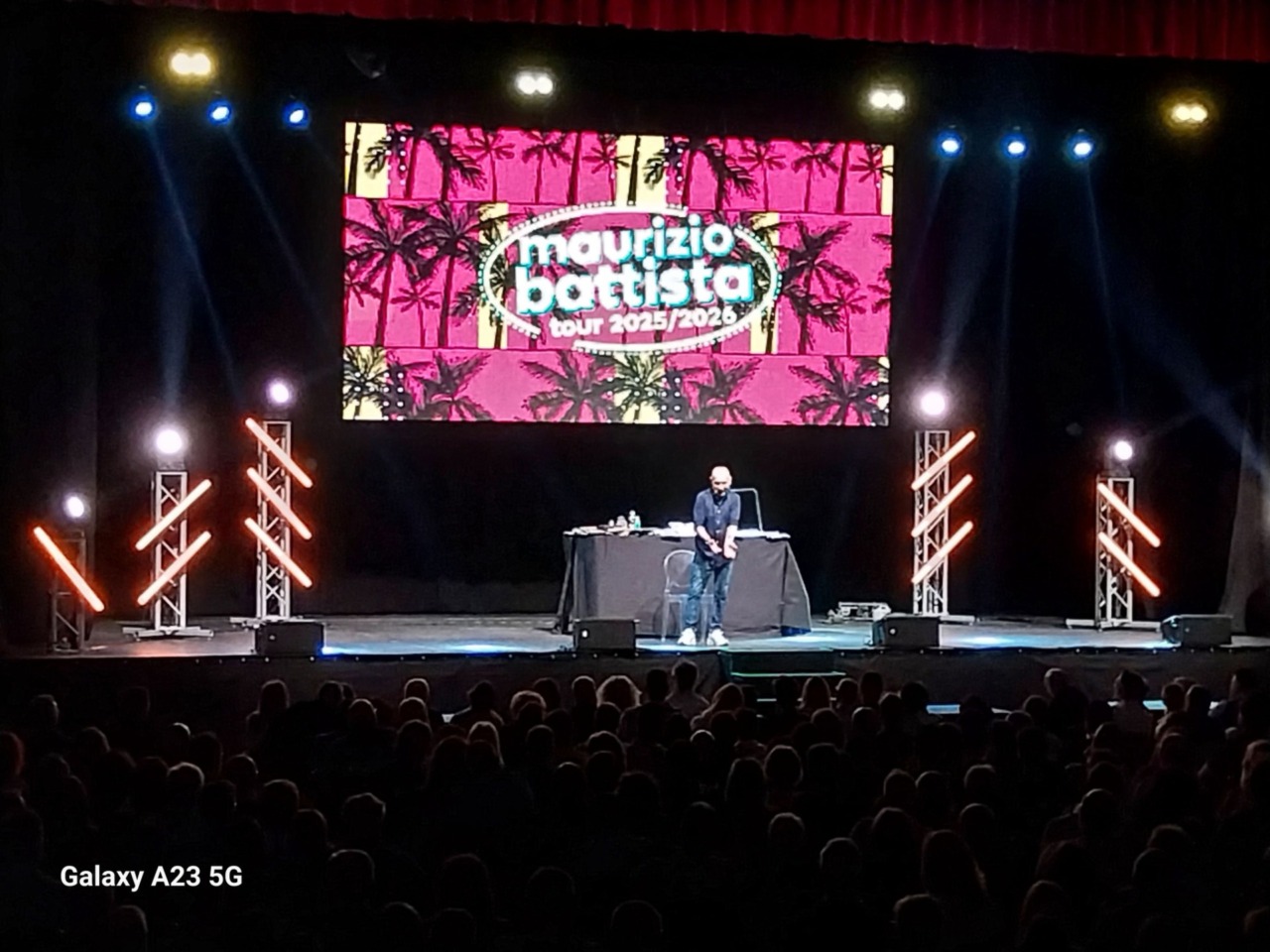 Alle 21 di sabato 18 aprile la ChorusLife Arena di Bergamo si è trasformata in palcoscenico per una serata di pura comicità d’autore. Maurizio Battista, romano classe 1957 – comico, cabarettista, attore, conduttore televisivo e regista teatrale – ha portato il suo “Tour 2025-2026”, confermando la sua capacità unica di leggere e raccontare le pieghe della società contemporanea. Davanti a una platea attenta, Battista ha alternato ironia pungente, racconti quotidiani e riflessioni sincere, usando un linguaggio diretto e genuino che è ormai il suo marchio di fabbrica.