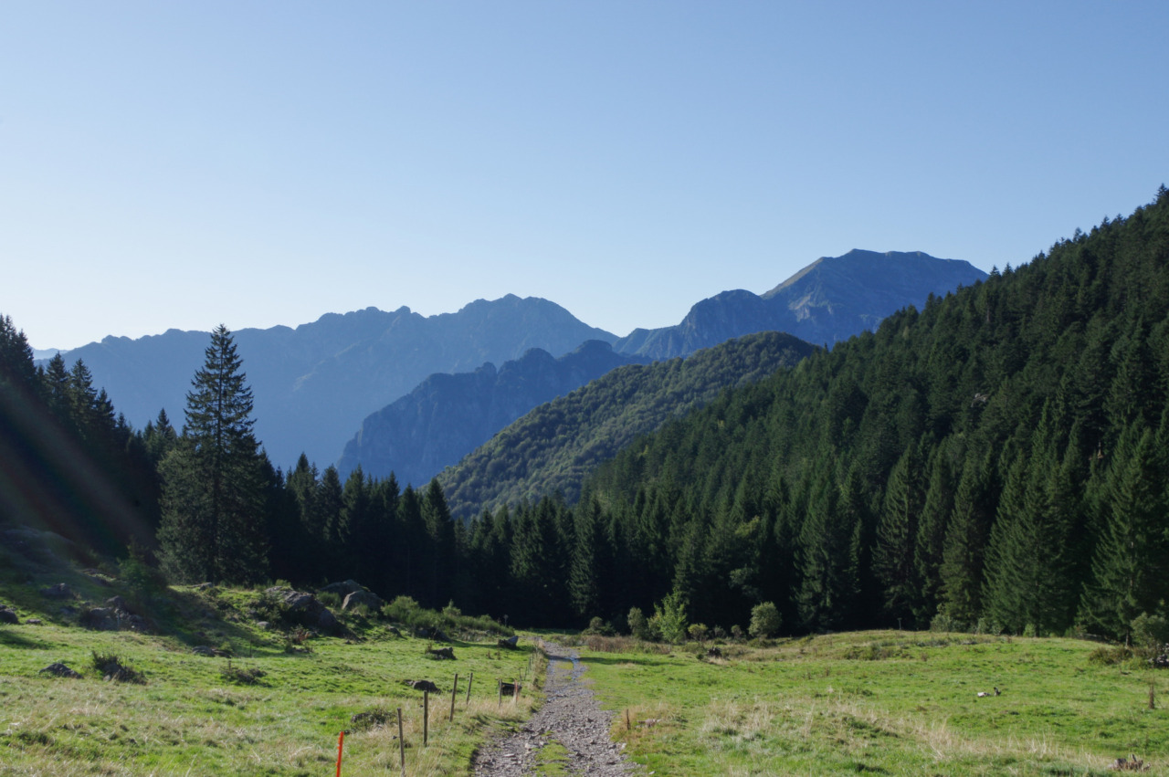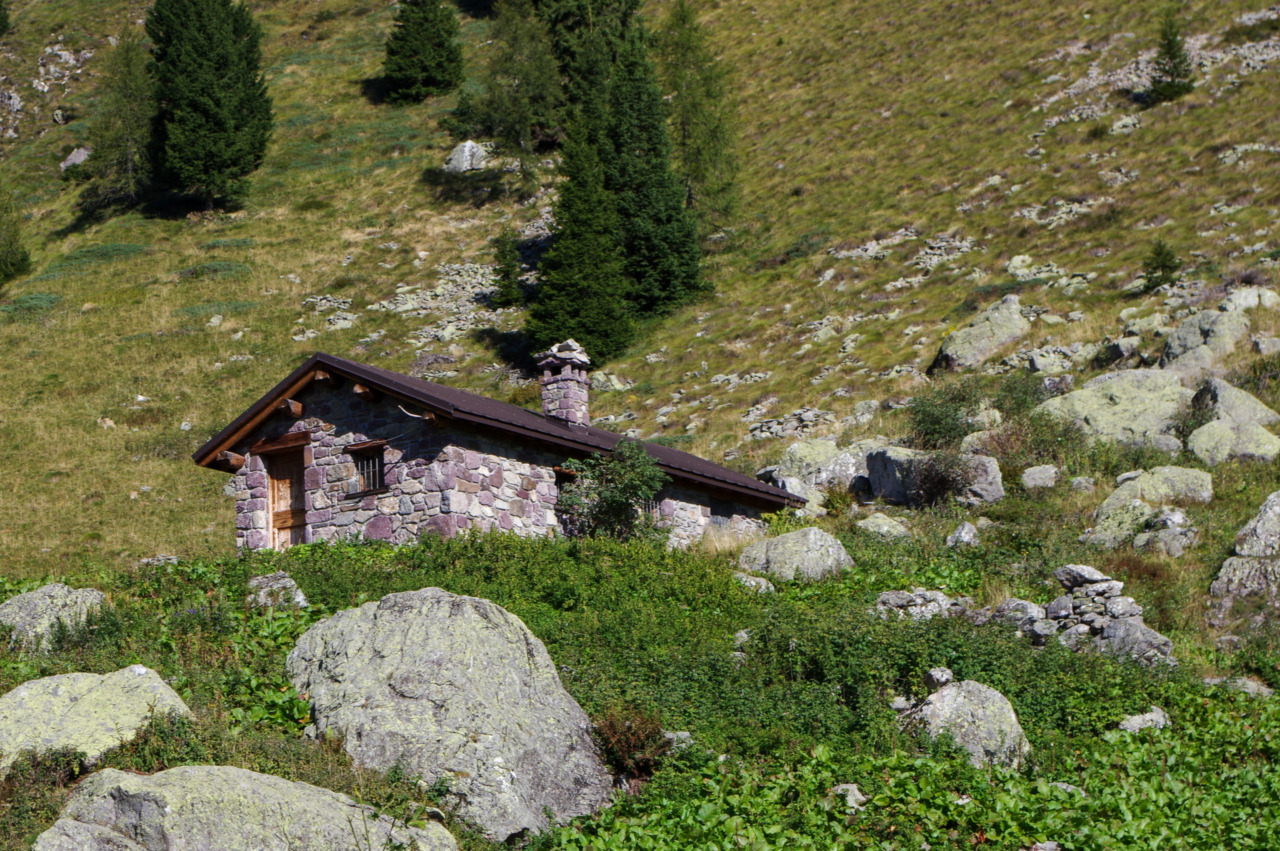 Continuiamo a salire e, passo dopo passo, gli alberi si diradano cedendo il posto all’erba e alle rocce. Noi continuiamo tra i fischi delle marmotte, toccando prima baita La Costa, poi baita Casera e successivamente baita Ciarelli, oggi casere, un tempo antiche fucine divenute e poi negli anni ricoveri per i pastori.