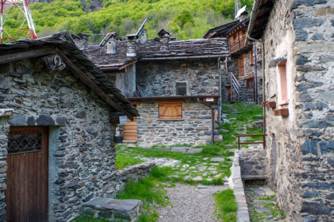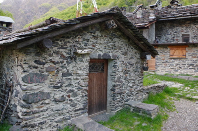 Le case, tutte completamente in sassi, si susseguono dividendo la località in quattro contrade: contrada Polli, composta da 15 abitazioni che ospitano 22 unità abitative restaurate e una fontana; contrada Caffi, composta da quattro baite che ospitano 15 unità abitative e due fontane; contrada Ca Sura, la più piccola, composta da un unico fabbricato dove vi sono sei piccole unità abitative; contrada Piccinella, quella posta più a nord, con due baite che ospitano sette unità. (…)