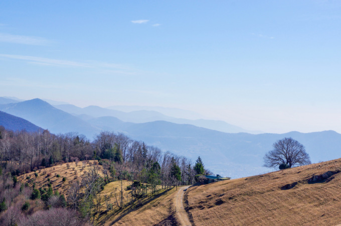 Abbiamo superato l’ora e mezza di cammino, ma gli sforzi vengono sicuramente ripagati dagli splendidi scorci che il lago d’Iseo regala in questo tratto del percorso. In graduale salita, raggiungiamo la Cascina Corno Buco e la vicinissima cima omonima (metri 940), dove ad attenderci troviamo una croce in ferro e uno skyline su tutta la Franciacorta e la Valcamonica. È il luogo perfetto per concedersi una prima pausa, più che meritata.