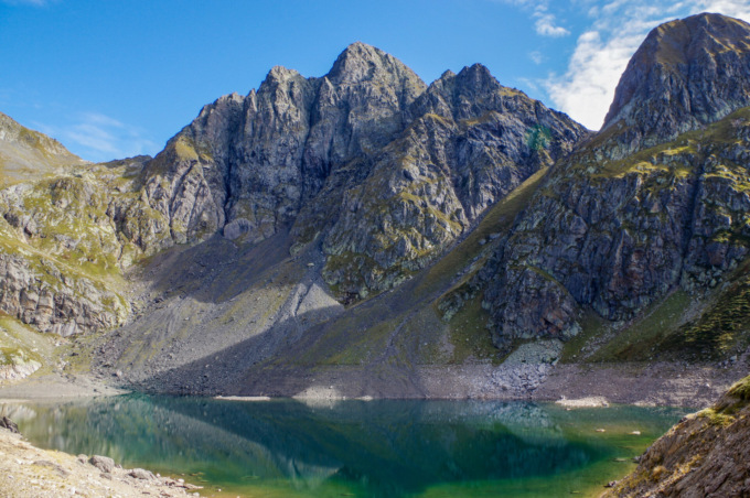 Il sentiero risale lungo i fianchi della montagna fino al rifugio, posto a 2.026 metri di quota. La sua posizione è la base perfetta per l’ascesa al famoso Pizzo del Diavolo, da sempre simbolo della bergamasca. Ma è anche il luogo perfetto per altre semplici passeggiate, come al vicino lago del Diavolo con i suoi stambecchi, o la visita alle incisioni rupestri della Val Camisana, poste ai piedi del monte Aga.