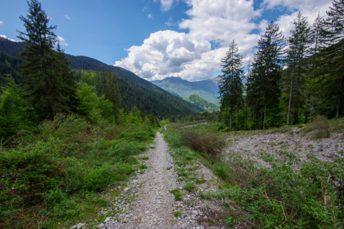 La nostra escursione trova partenza dalla località di Piazzo, in prossimità del Palaghiaccio. Posteggiata l’auto, troviamo un cartello che indica la nostra destinazione, marchiata dal segnavia Cai 118. Inizialmente, risaliamo un breve tratto su asfalto, per piegare poi bruscamente a destra costeggiando un ampio vallone pietroso. Il sentiero inizia a salire ripido nel bosco, compiendo ampi zig-zag che passo dopo passo ci portano in un ambiente sempre più incontaminato e suggestivo, ricco di abeti, larici e pini.