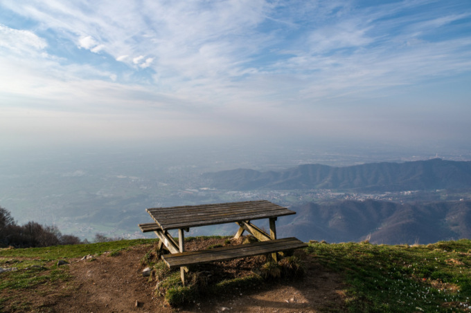 Il nostro percorso, inizialmente cementato, sale in direzione dei vicini ripetitori per poi continuare fino alla croce di vetta del monte Linzone, raggiungibile con pochi sforzi lungo un sentiero ben segnalato. Un tappeto di crocus ci guiderà fino ai 1.392 metri di quota, dove ad attenderci spicca un panorama unico su tutta la Pianura Padana e gli Appennini, con una porzione di arco alpino che va dalle Alpi fino al massiccio del Monte Rosa e al Cervino.