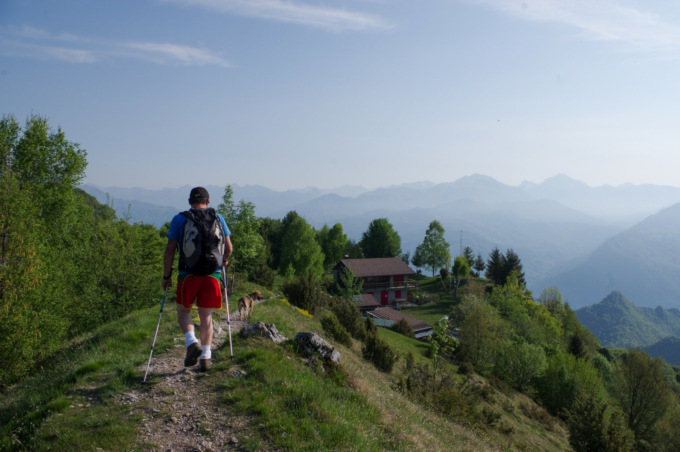 Per raggiungere la cima della nostra montagna dobbiamo proseguire lungo il sentiero, che inizialmente attraversa in falsopiano un ampio prato ricco di fioriture primaverili e con alcune stalle ristrutturate. Superiamo una cascina e, in ripida salita, ci congiungiamo al sentiero che sale da San Pellegrino…
