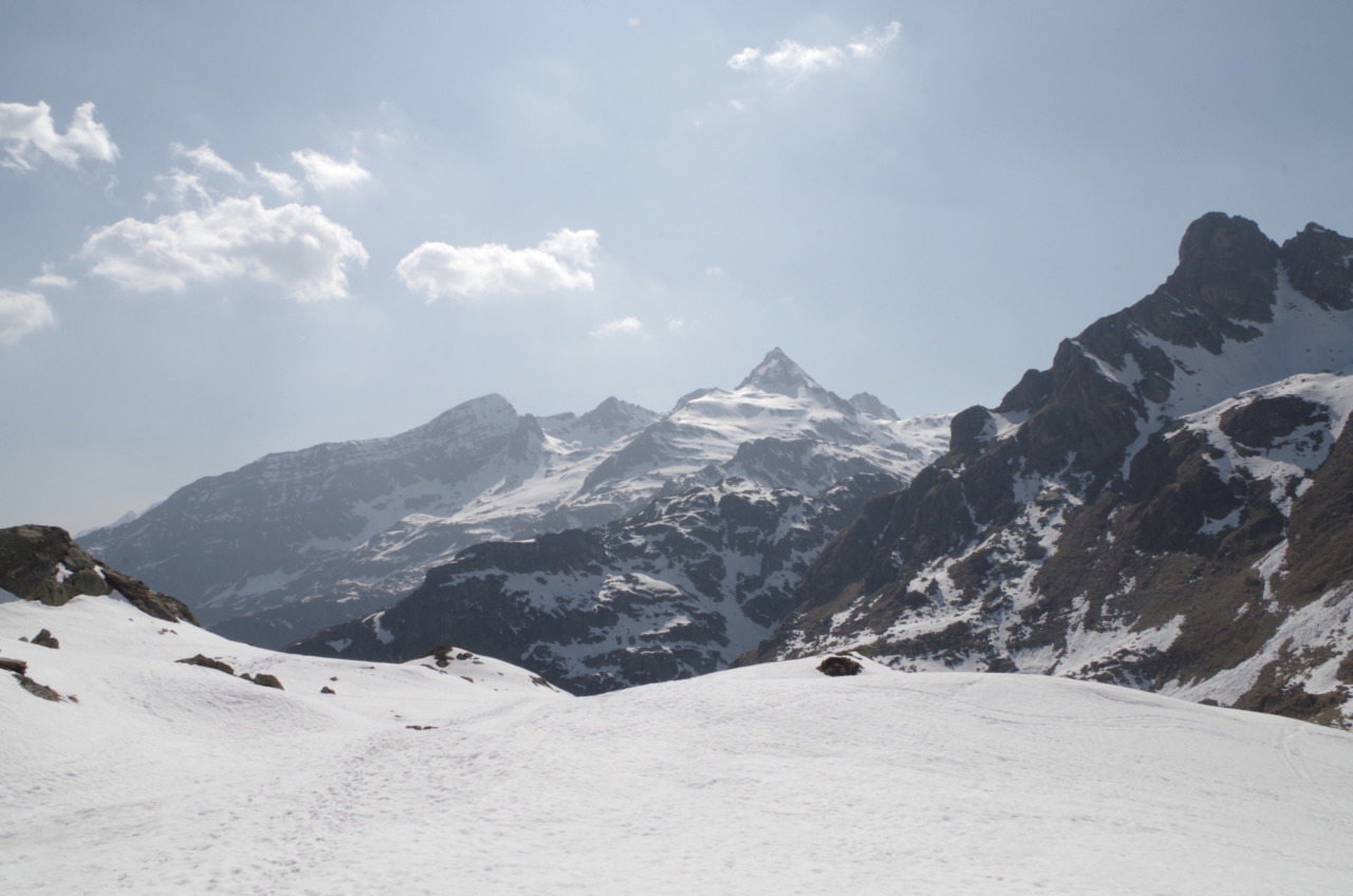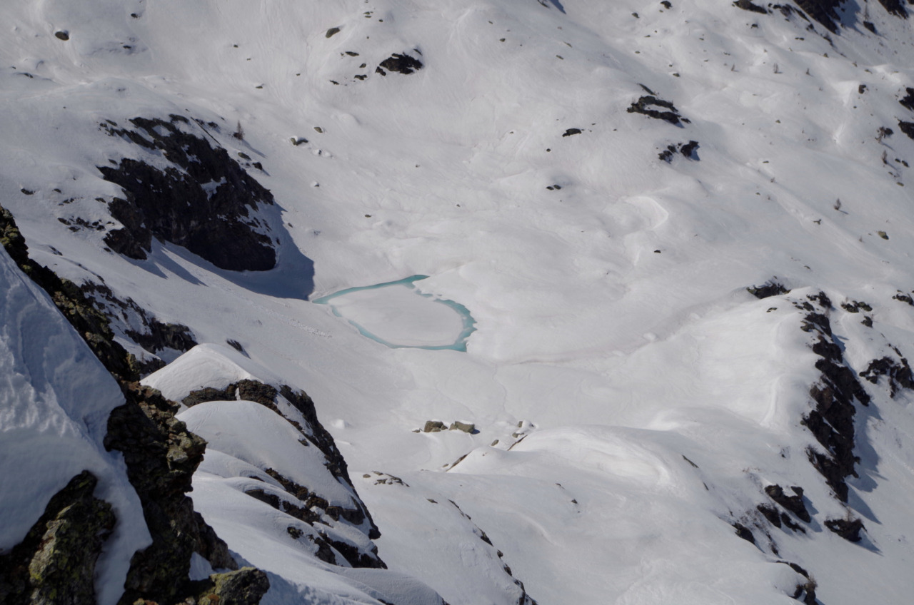 Alla nostra destra si erge l’imponente parete del monte CaBianca. Solo gli esperti possono sfidare questo versante: in tal caso si attraversa il coronamento della diga e si continua fino a raggiungere le verticali pareti della montagna. Armati di piccozza e ramponi si risale il canale, che ha pendenze di circa 40°/45°. La parte più alta è spesso caratterizzata da una bella cornice di neve, che dal basso sembra insuperabile, ma in realtà è agevole.