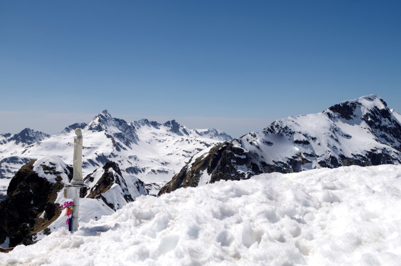 Recuperate le energie proseguiamo lungo il segnavia Cai 226, attraversando la conca sottostante: il sentiero prosegue inizialmente in falsopiano, inerpicandosi poi con fatica in direzione del passo, valico che mette in comunicazione la Valle Brembana con la Seriana. Seguendo la traccia lasciata nella neve, prestando la massima attenzione alle cornici presenti, raggiungiamo la vetta del monte Madonnino, dove ad attenderci a 2.504 metri di quota troviamo una statua raffigurante la Vergine Maria e un panorama mozzafiato, che spazia su tutte le valli bergamasche.