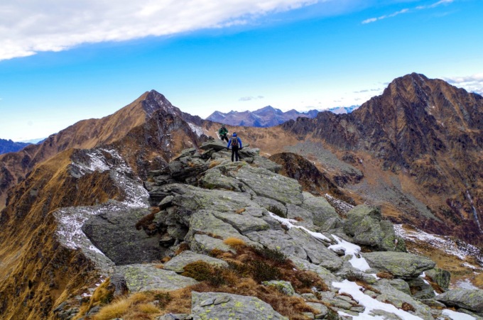 La nostra escursione trova partenza da Mezzoldo, più precisamente dal rifugio Madonna delle Nevi (metri 1.330). Posteggiata l’auto nel grande parcheggio, ci incamminiamo lungo il segnavia Cai 124, che con alcuni tornanti risale tra i colori del bosco fino a toccare Baita Arale. Noi continuiamo, ora su pascoli e prati, transitando presso l’antica Casera Azzaredo e fino a raggiungere il rifugio Balicco (metri 1.963) dopo circa due ore di cammino.
