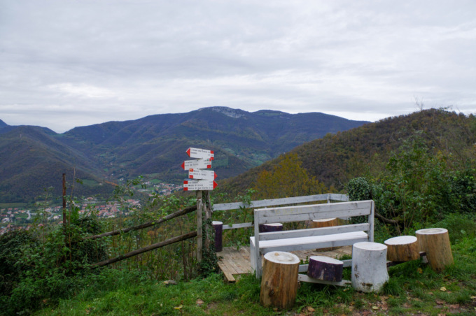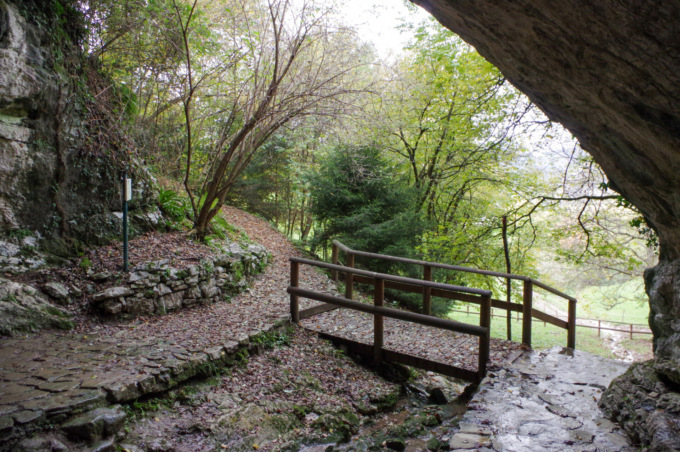 Lasciata la pieve alle nostre spalle, proseguiamo imboccando via Luèt. Risaliamo la strada cementata per poi piegare a destra e proseguire in falsopiano attraverso il bosco. Dopo aver superato una piccola fonte, conosciuta dalle persone del luogo come Canale, raggiungiamo l’ampio pianoro che ospita il parco Stoppani, adagiato tra i castagni e attrezzato con tavoli e panchine. Poco distante, un’ampia cavità entra nel cuore della montagna.