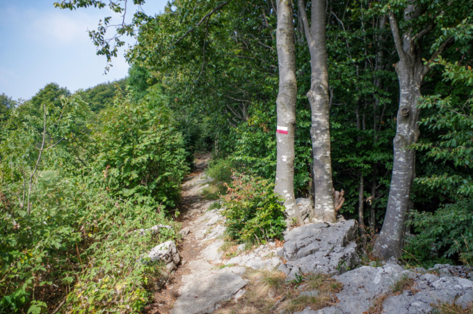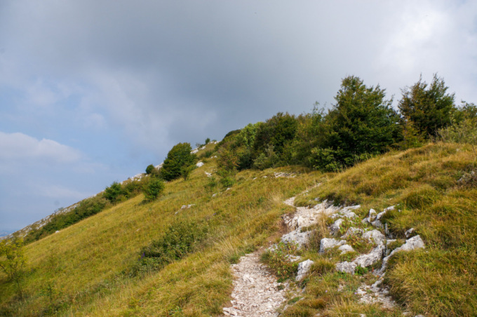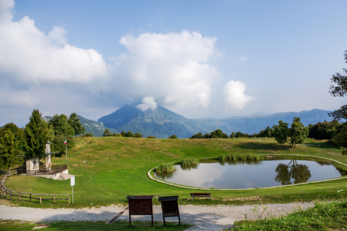Il nostro percorso si snoda alle spalle del laghetto; imbocchiamo il sentiero Cai 571 e seguiamo le facili indicazioni in direzione del rifugio monte Tesoro. Percorrendo questo tratto del sentiero ci si trova a camminare in una sorta di trincea, ben definita da muretti di sassi impilati a secco: quest’ultima fungeva proprio da fortificazione e segnava il punto di confine tra il Ducato della Serenissima di Venezia e quello dei Visconti di Milano. È probabile che alcuni dei rustici che si incontrano lungo questo sentiero siano stati un tempo corpi di guardia.