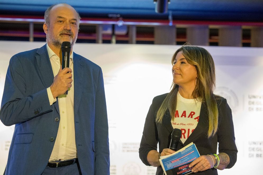 Sul palco si sono alternati i saluti istituzionali: il rettore Sergio Cavalieri, il vicesindaco Sergio Gandi, insieme Gabriele Cocco, delegato del rettore ai rapporti con studentesse e studenti, Fabio Cleto, delegato del rettore a UniBg OnAir, la eeb radio di Ateneo, e Giorgia Morotti, presidente della Consulta degli studenti.